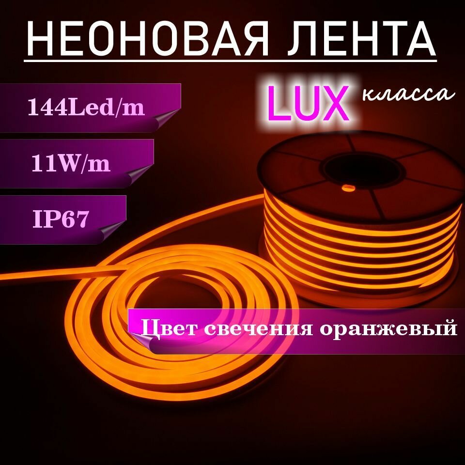 Гибкий неон 220в, LUX 8х16, 144 Led/m,11W/m, оранжевый, 5 метров