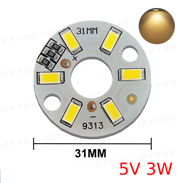 Купить Алюминиевая круглая светодиодная плата (модуль) D31 5V 3W 6led smd 5730, белый теплый свет 3000K