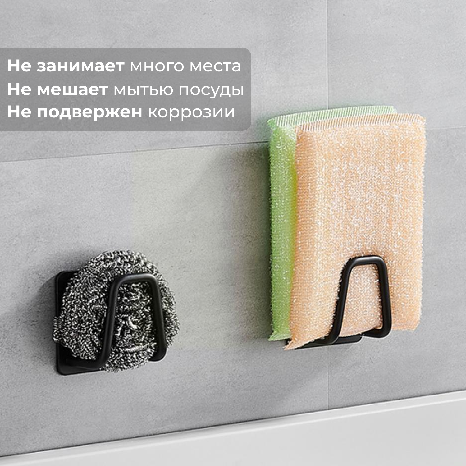 Держатель для губки на кухне / крючок самоклеящийся для раковины, цвет: чёрный, 2 штуки в комплекте интересное: