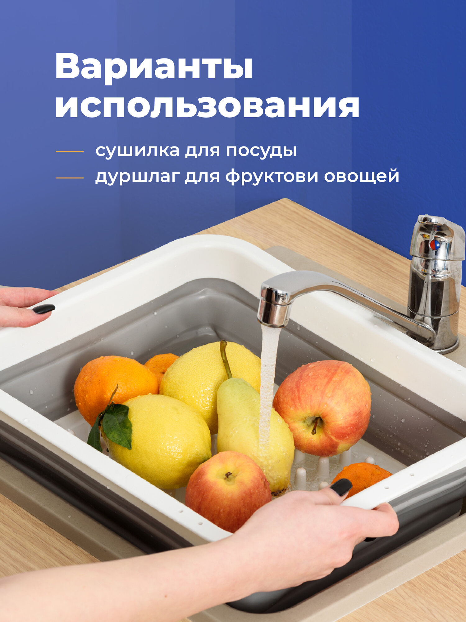 Cушилка для посуды складная силиконовая, Shiny Kitchen, Подставка для сушки посуды и приборов/ Дуршлаг складной интересное: