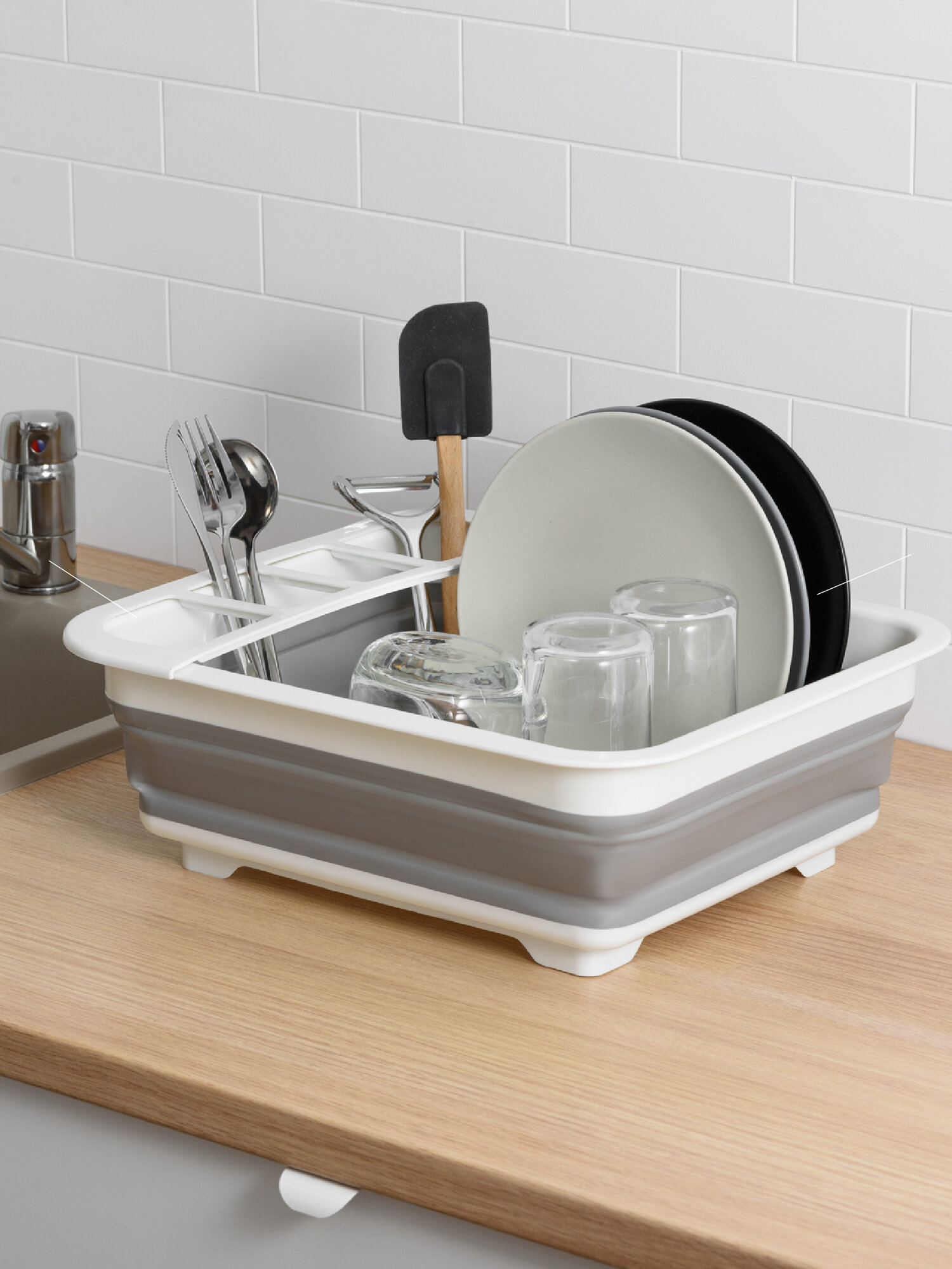 Купить Cушилка для посуды складная силиконовая, Shiny Kitchen, Подставка для сушки посуды и приборов/ Дуршлаг складной