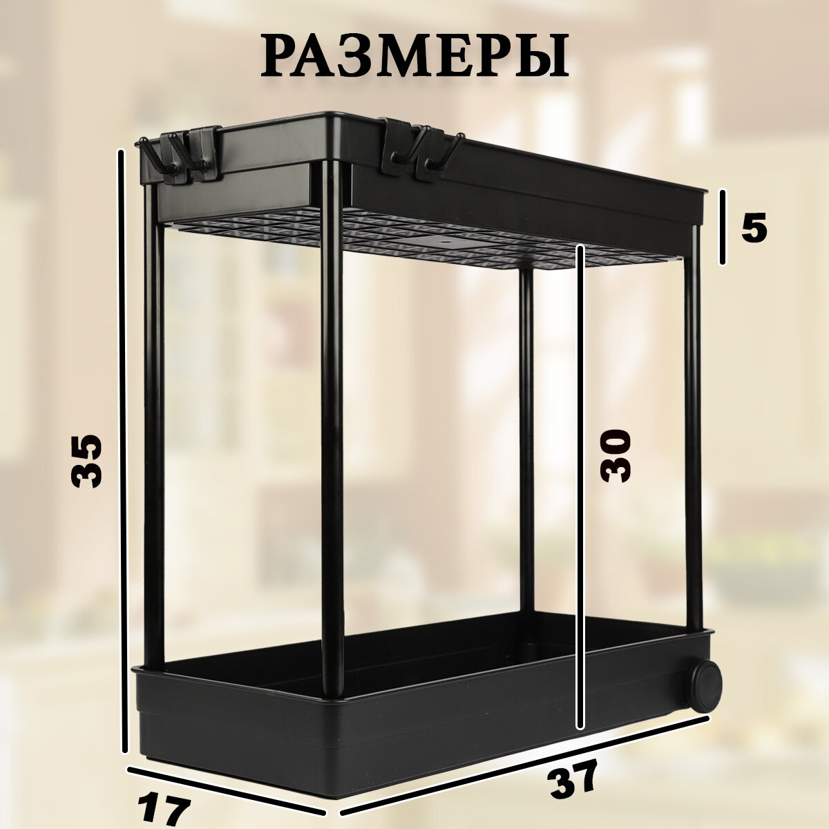 Органайзер выдвижной для кухни и ванной. Полка для хранения под раковину двухъярусная, пластиковая. Черная, 37*17*35 интересное:
