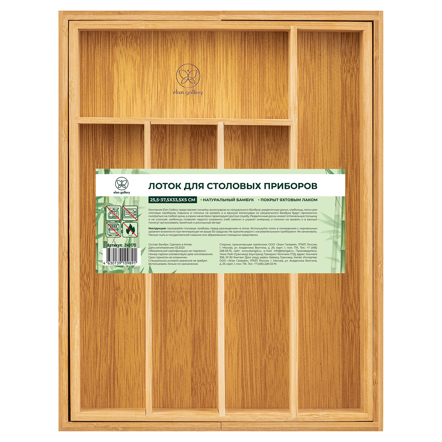 Купить Лоток деревянный для столовых приборов подставка в ящик 33,5х25,5х5 см Elan Gallery, раздвижной, бамбуковый