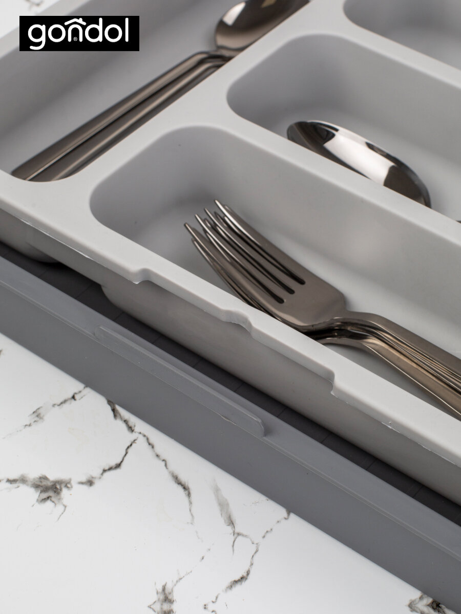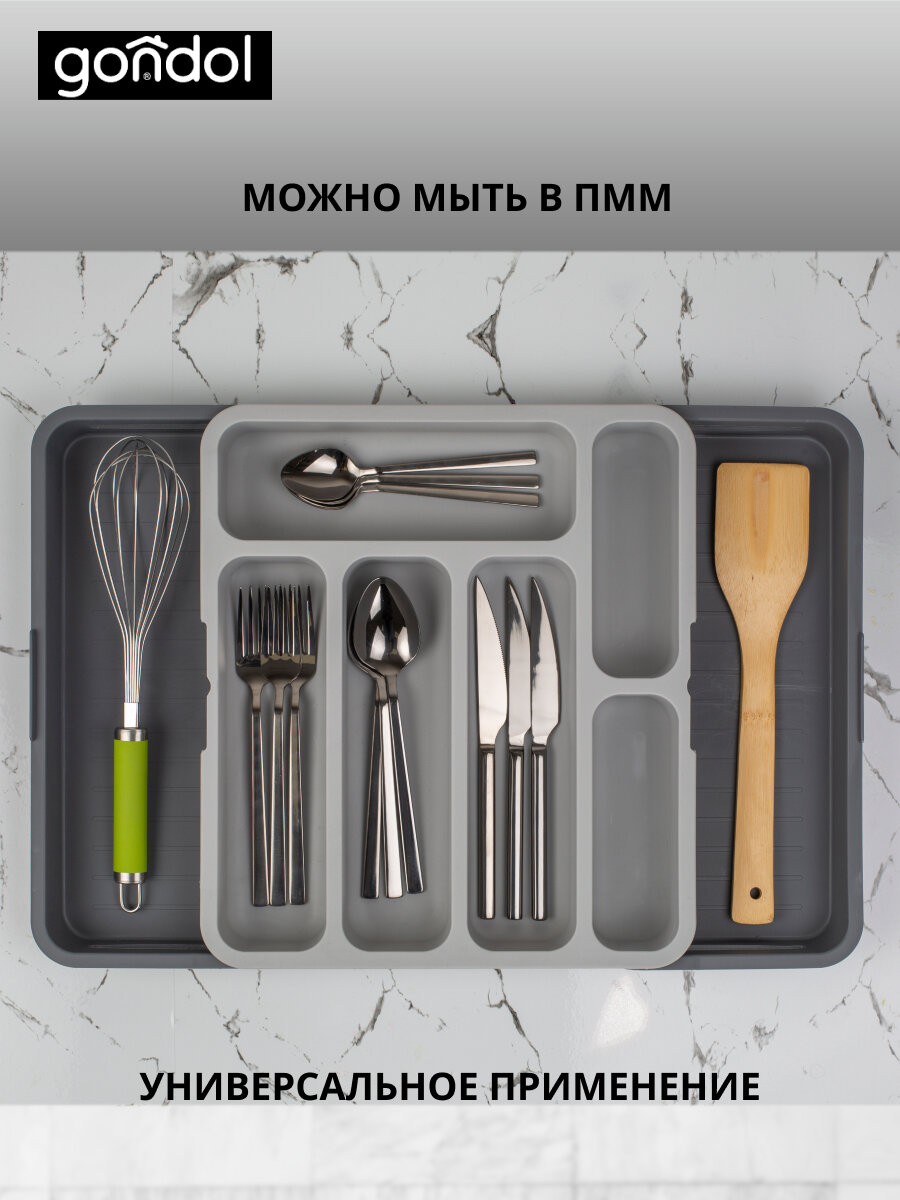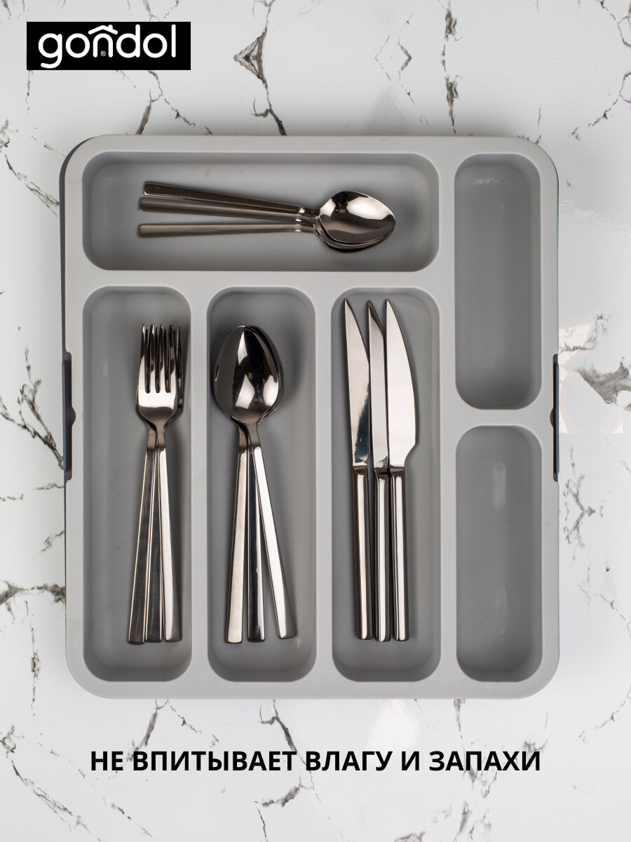 Лоток Gondol для столовых приборов раздвижной серый (G-87-GR)