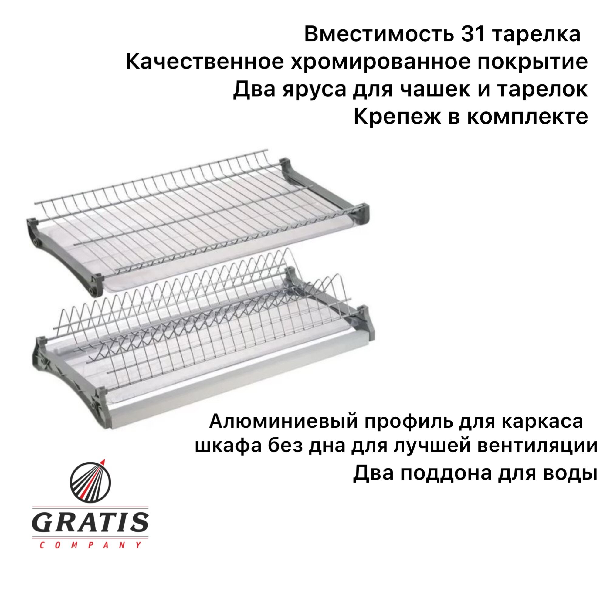 Сушилка для посуды в верхний шкаф 800 мм, с двумя поддонами и рамой, хром (Вариант-3) интересное: