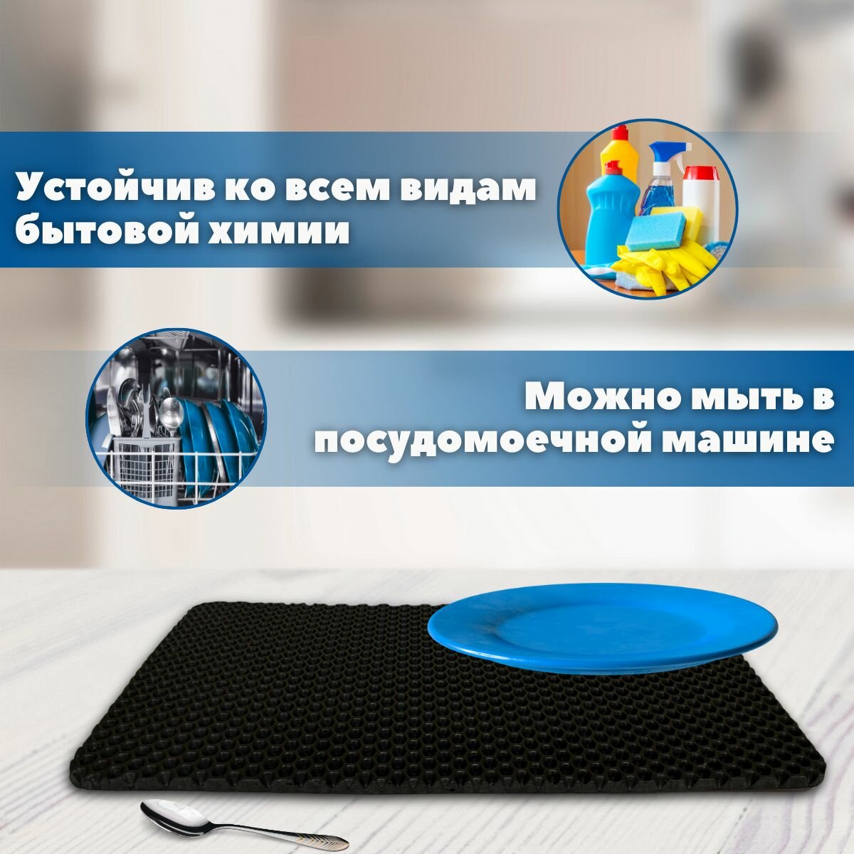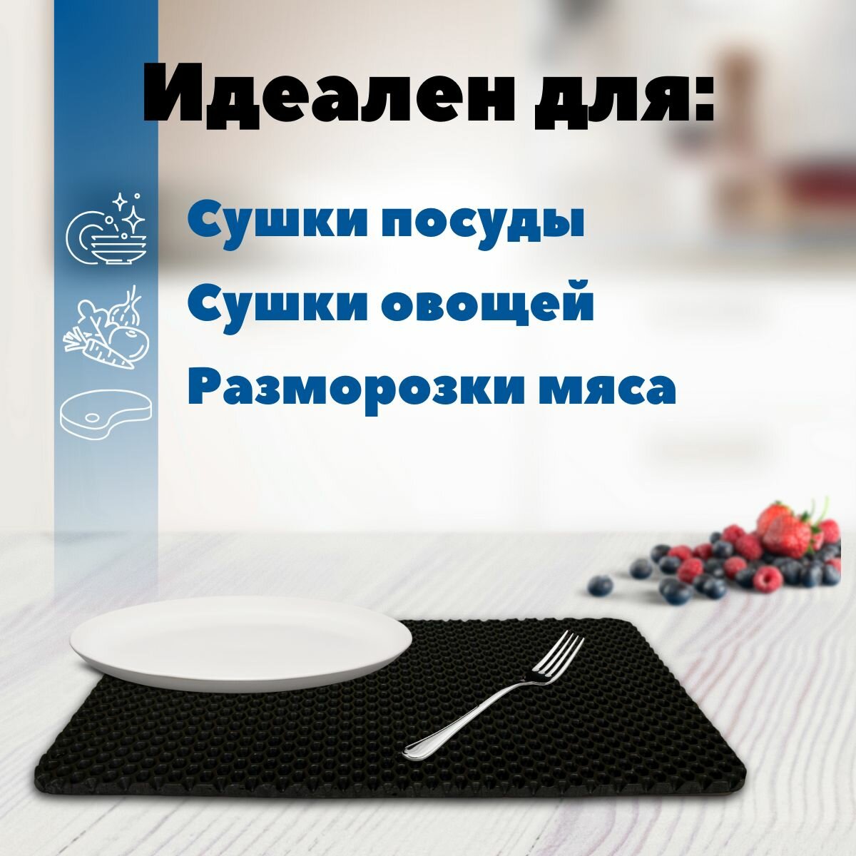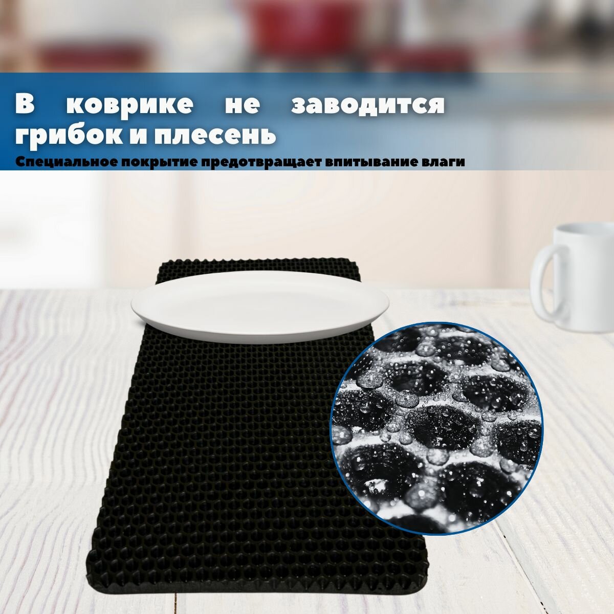 Набор ковриков SaVakS из ЭВА материала для сушки посуды из трех штук, 20х40см / Для кухни / Черный / Сота интересное: