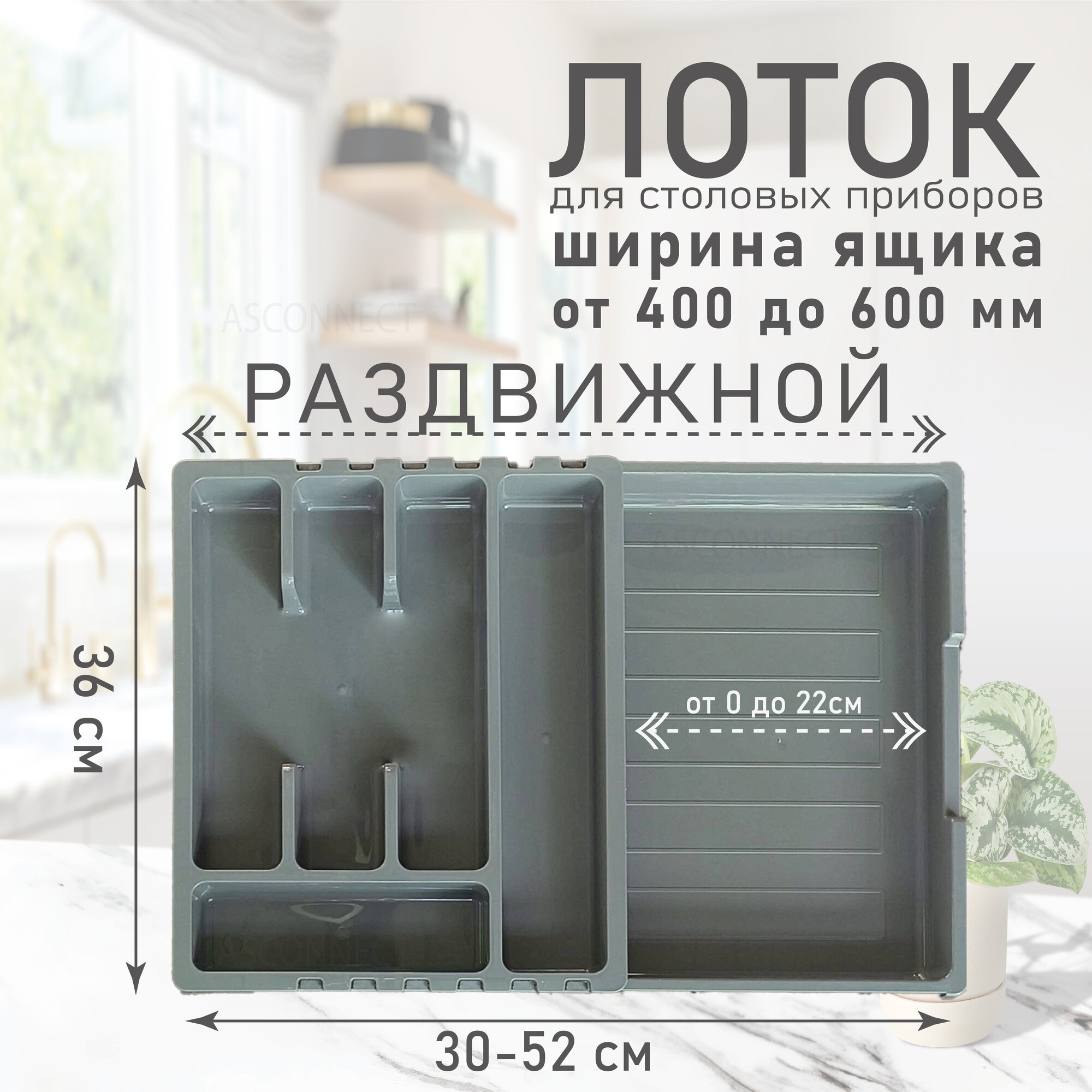 Лоток для столовых приборов раздвижной в ящик/модуль/шкаф 400 мм, 500 мм, 600мм. Органайзер для столовых приборов раздвижной. Россия. Темно-Серый. интересное: