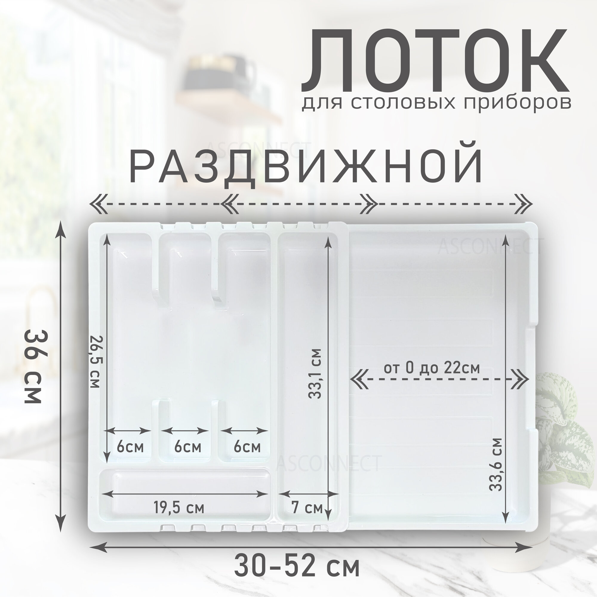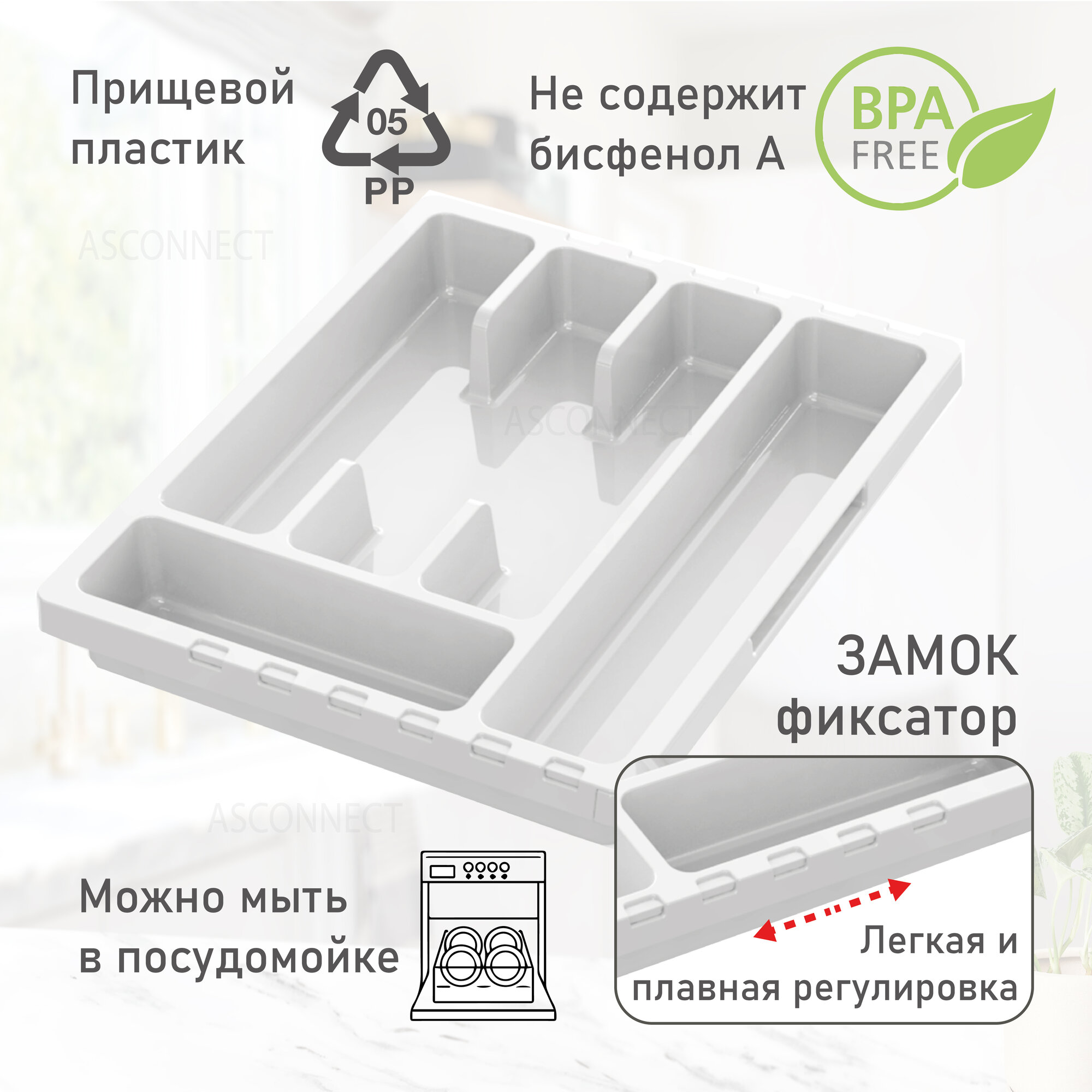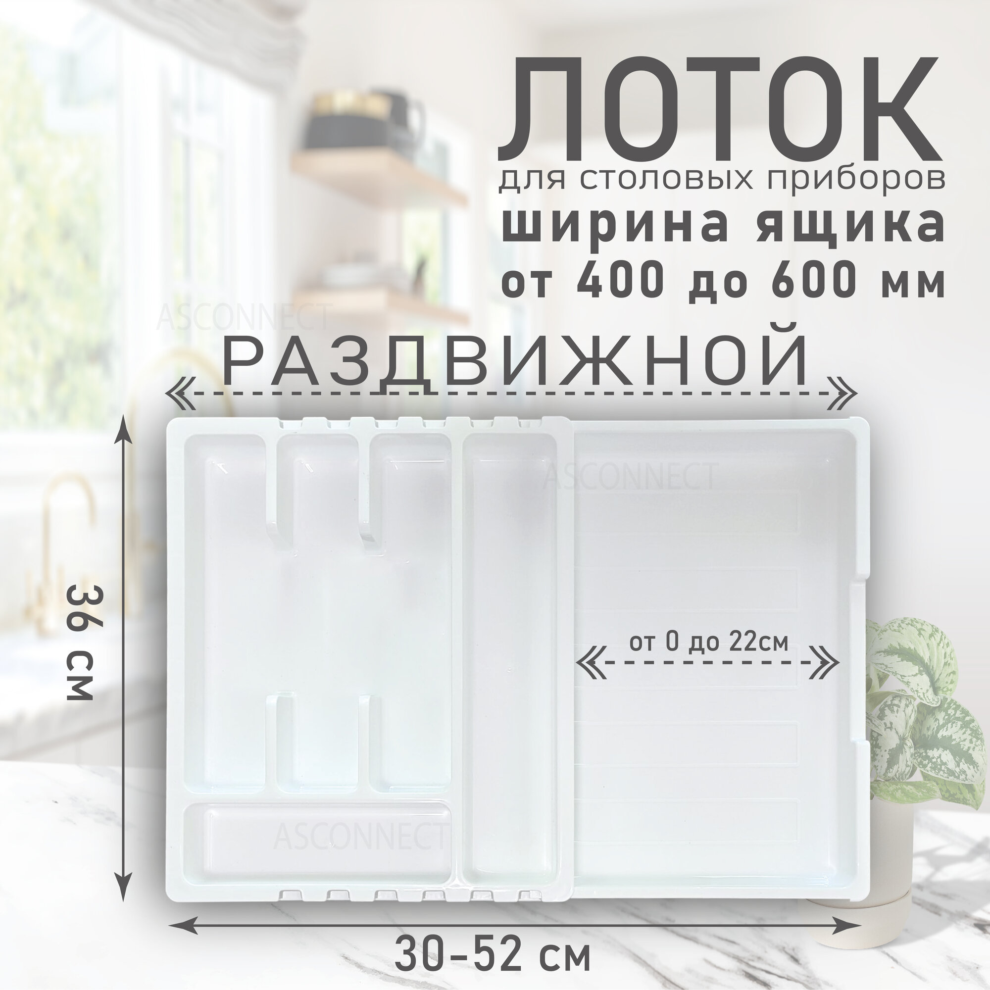 Лоток для столовых приборов раздвижной в ящик/модуль/шкаф 400 мм, 500 мм, 600мм. Органайзер для столовых приборов раздвижной. Россия. Белый. интересное: