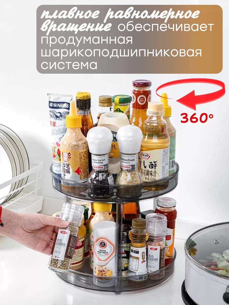 Органайзер "Вращающийся лоток для специй" 27см двухъярусный прозрачный