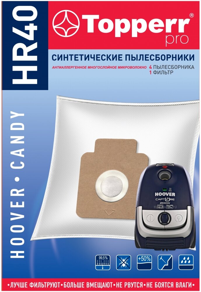 Купить Topperr Пылесборник синтетический для пылесоса Hoover, Gorenje, Candy - 4 шт + 1 фильтр (H63, H64, H58, GB1), HR40