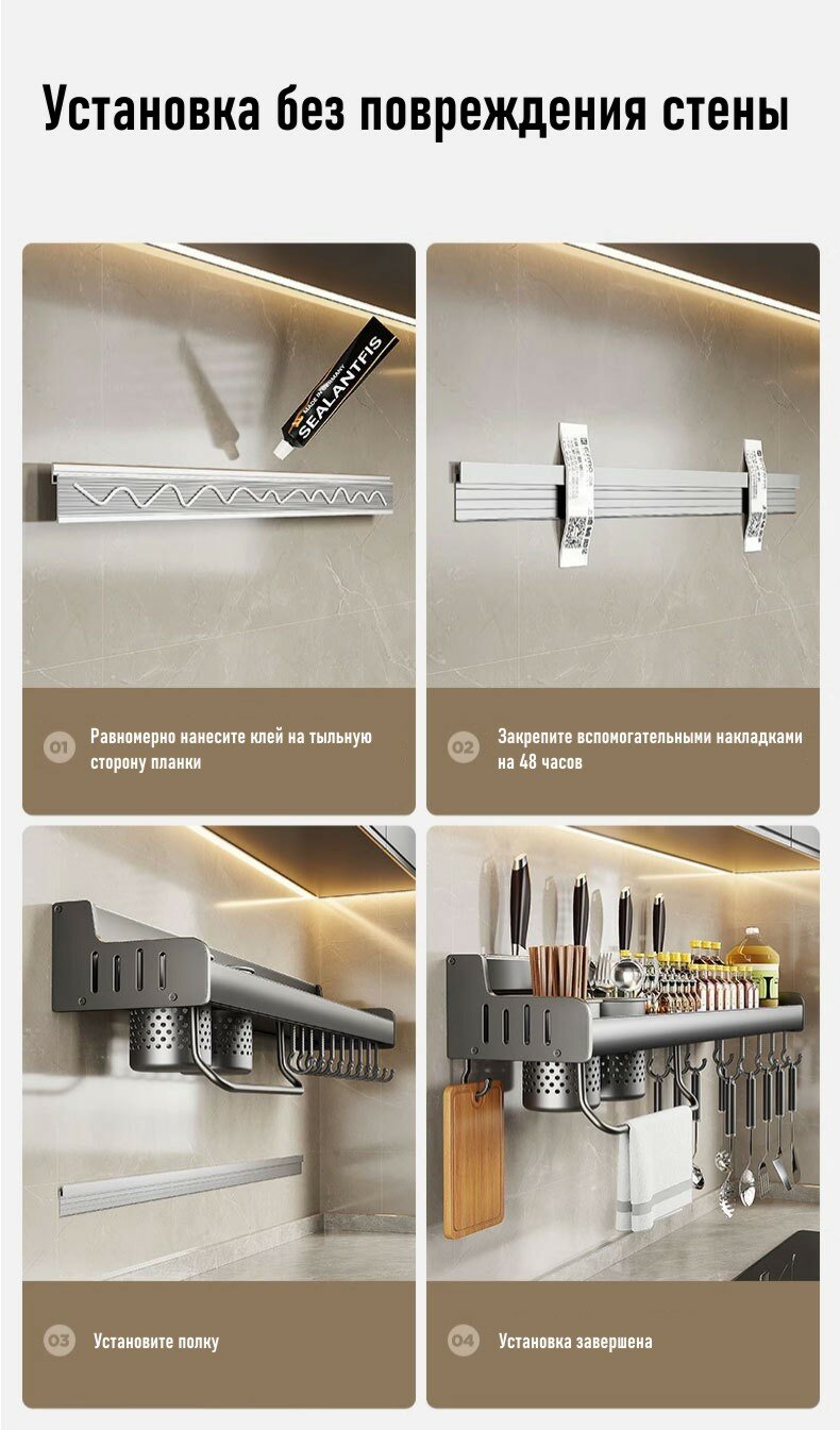 | Комплектация | Полка рейлинг RACK 80 см органайзер для кухни - 1 шт. |