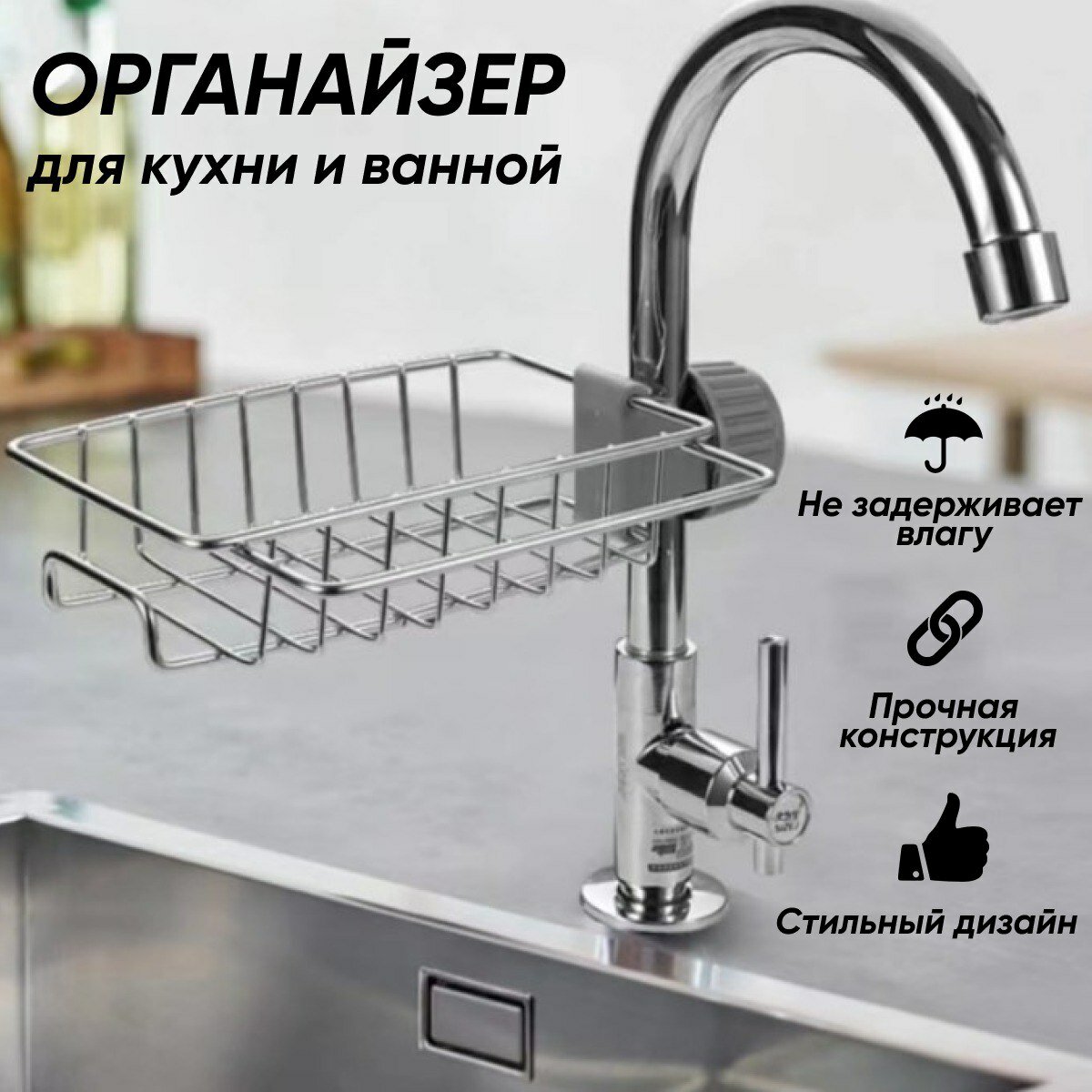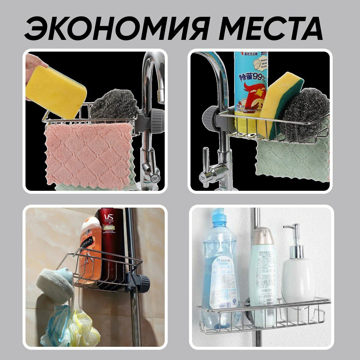 Держатель для губки на кухне, держатель для мыла, органайзер на кран для губки и моющего средства, мыльница на кран интересное: