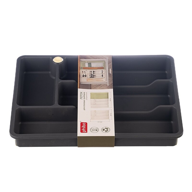 Лоток для столовых приборов раздвижной, серый, Бытпласт, Phibo, 434231811