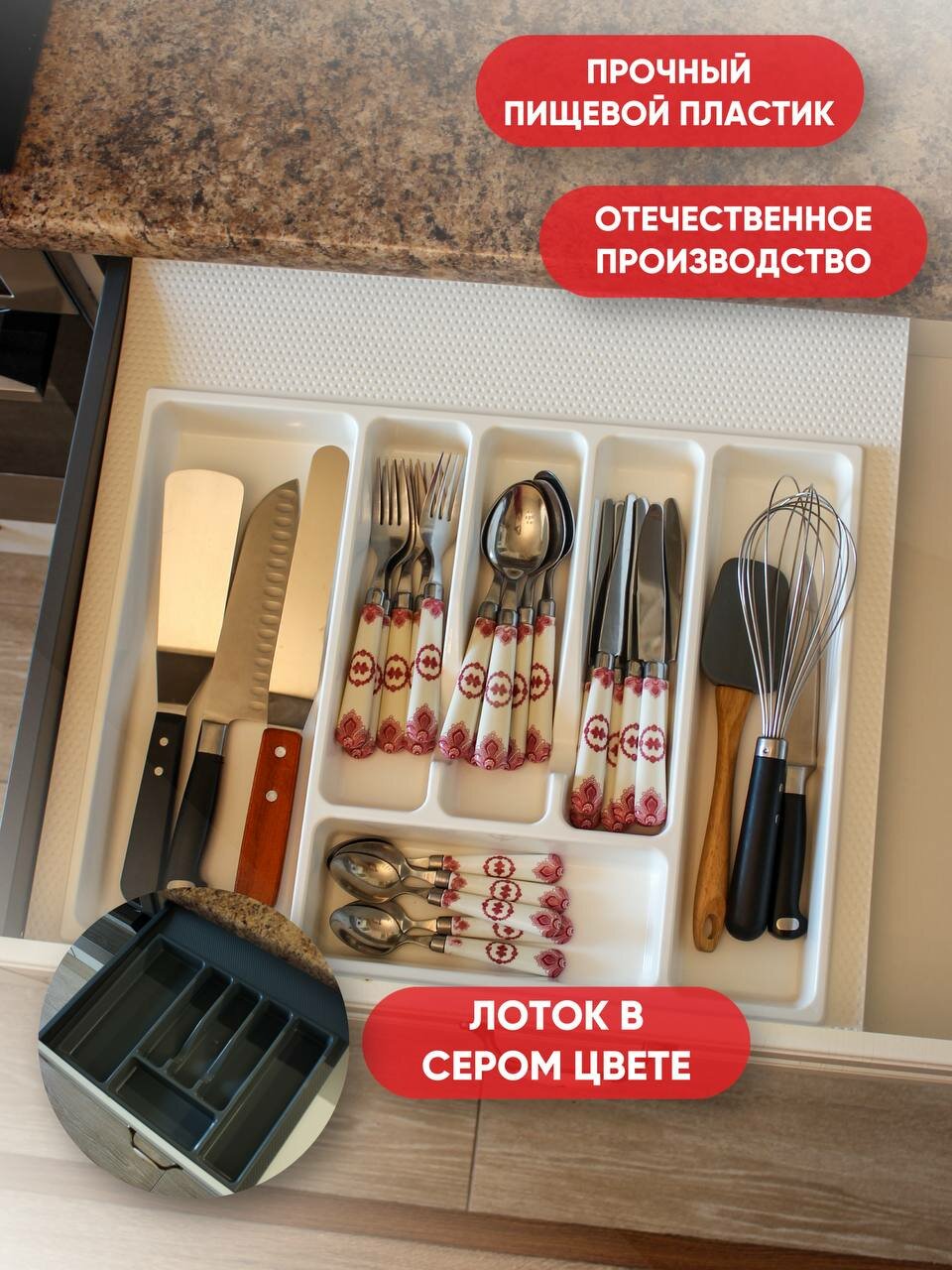 Лоток для столовых приборов в ящик/модуль/шкаф 600 мм Органайзер для столовых приборов белый Россия интересное: