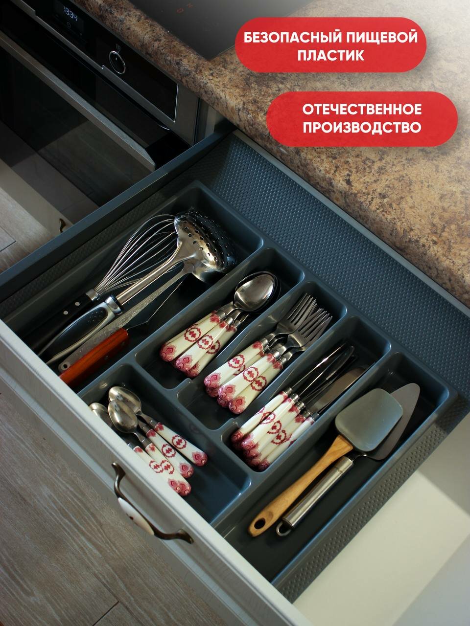Лоток для столовых приборов в ящик/модуль/шкаф 400 мм Органайзер для столовых приборов серый Россия