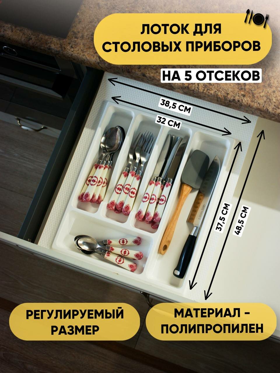 Лоток для столовых приборов в ящик/модуль/шкаф 400 мм Органайзер для столовых приборов белый Россия интересное: