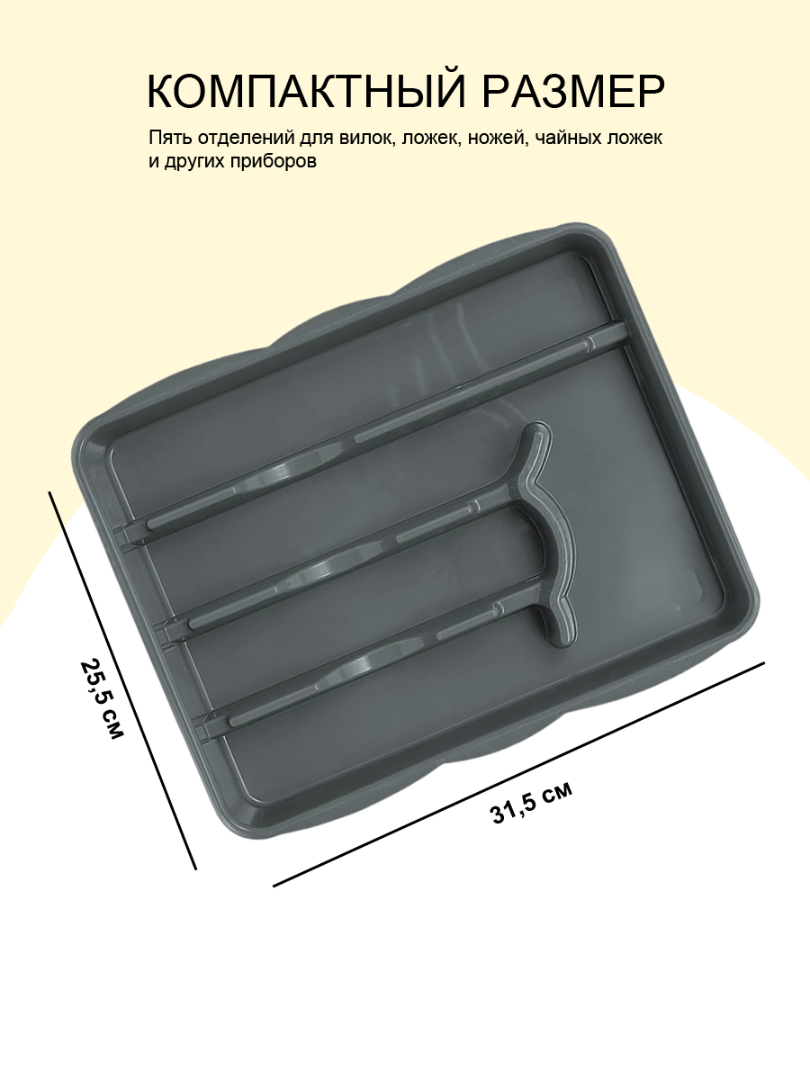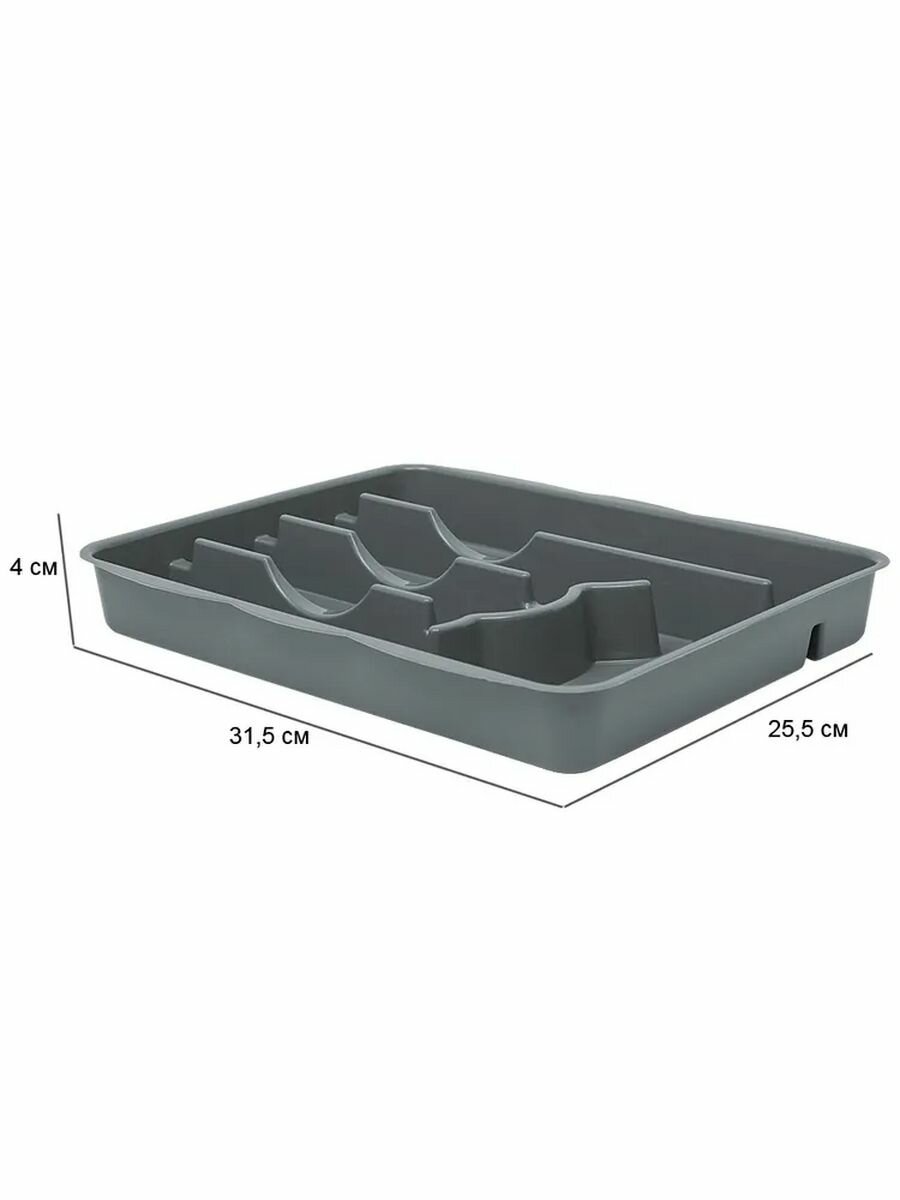 Купить Лоток для столовых приборов 31,5х26х4,2см серый / пластиковый / Кухонный органайзер под приборы в ящик / Сушилка для ложек и вилок / Поддон для сушки