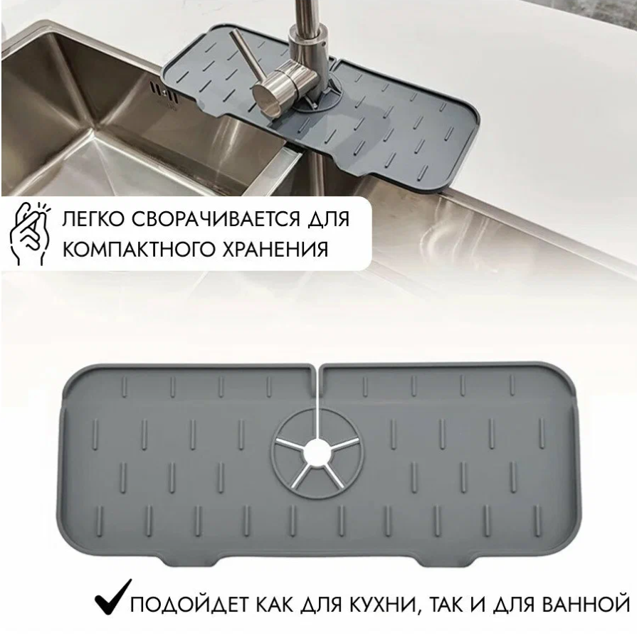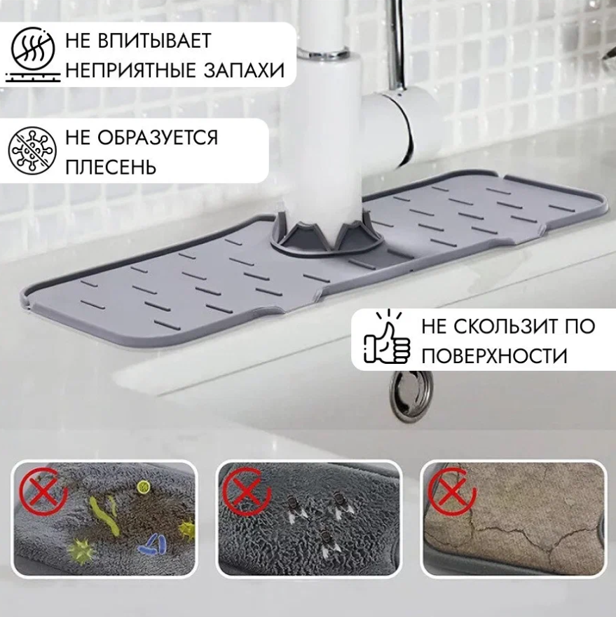 Коврик для крана - силиконовый коврик на раковину под смеситель, серый интересное: