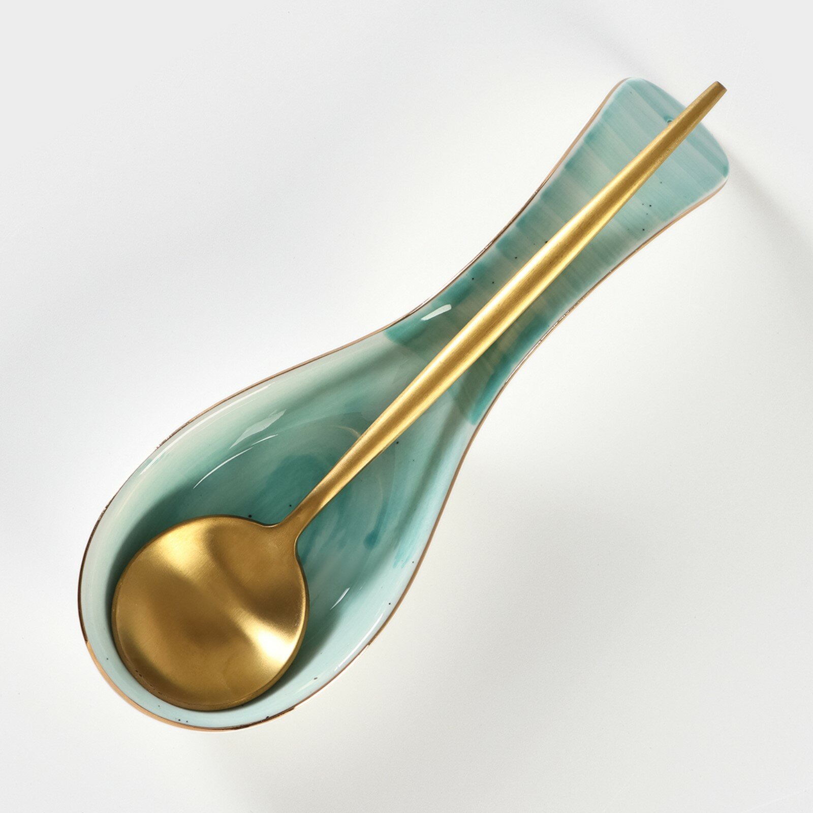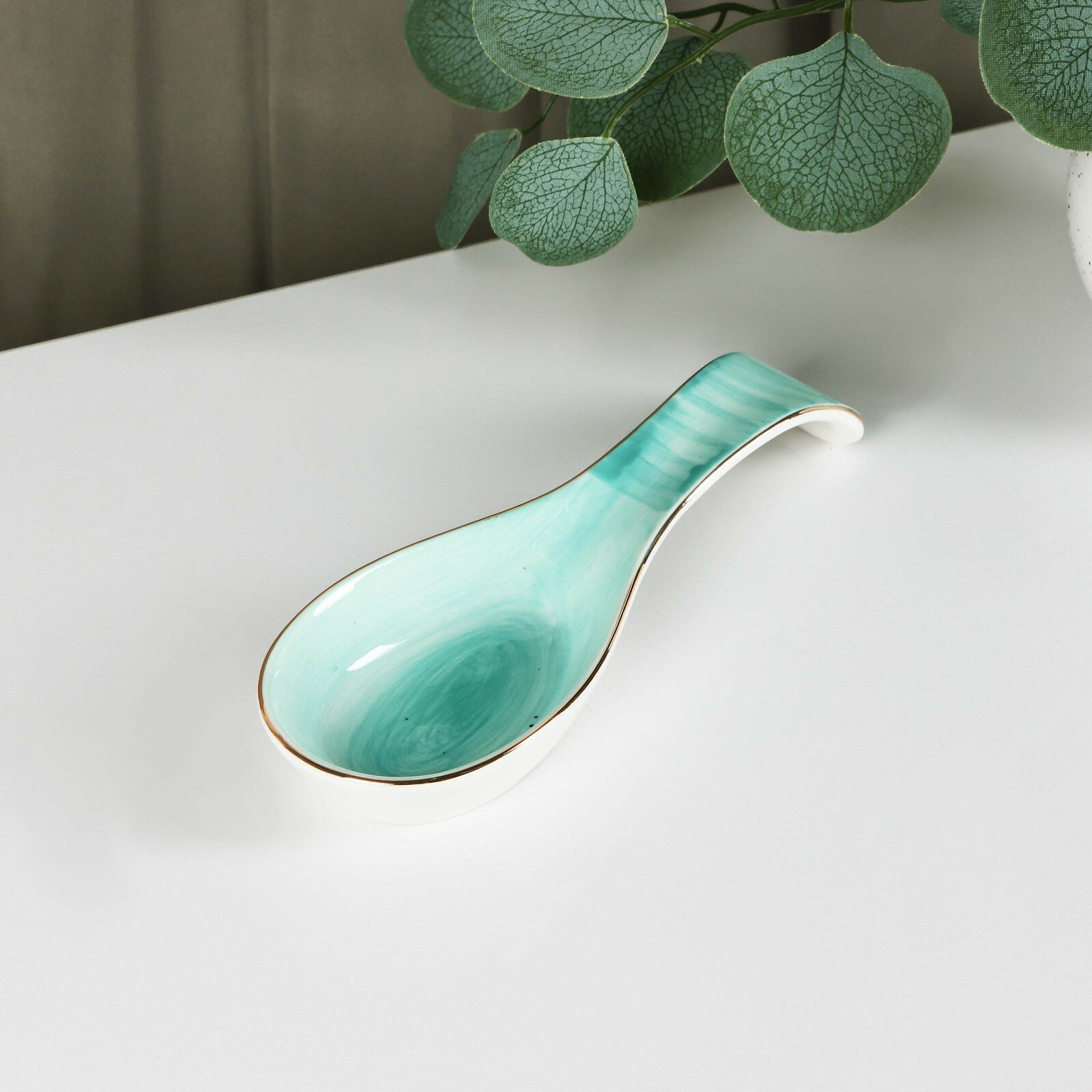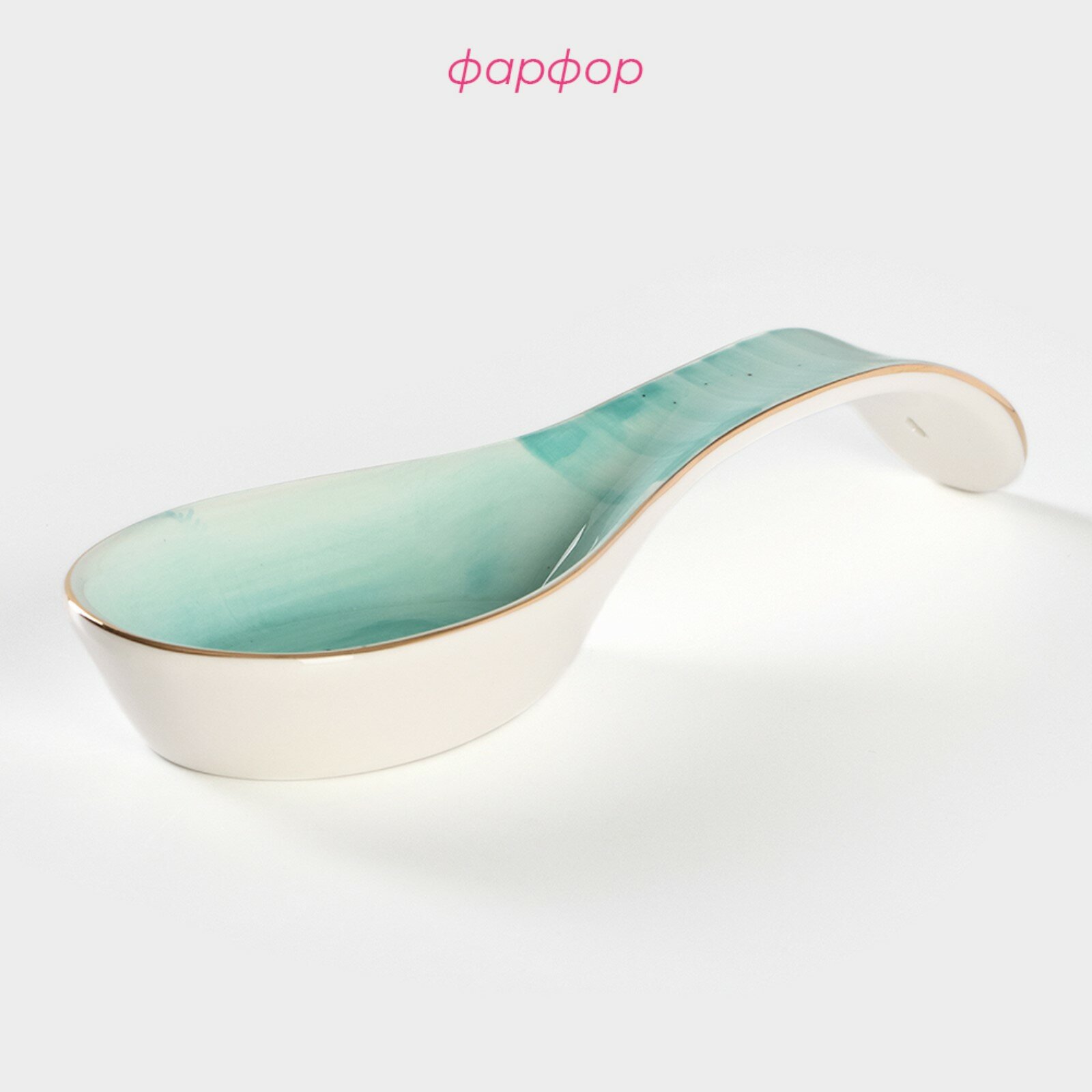 Подставка фарфоровая под ложку Доляна «Млечный путь», 21,5×7,5 см, цвет бирюзовый, 6495417