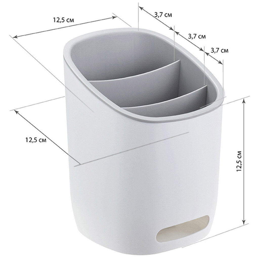Подставка для столовых приборов Idea / Идея Изли с тремя секциями для хранения, из полипропилена, белого цвета, 16х15х18см / аксессуары для кухни