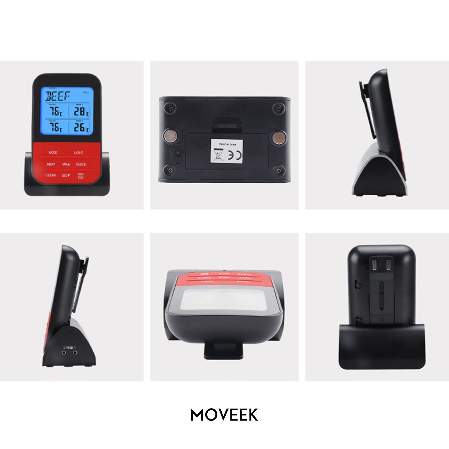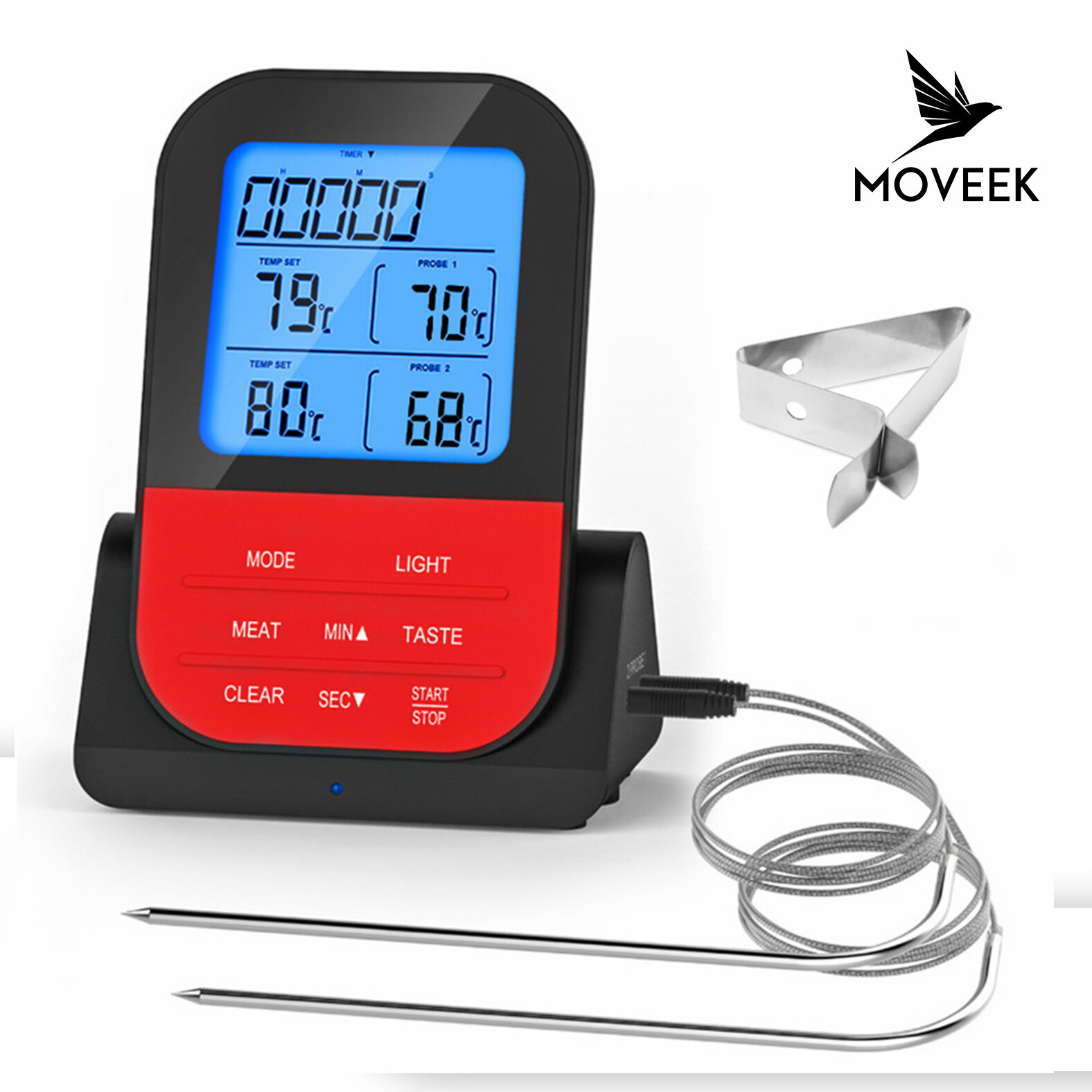 Купить Беспроводной кулинарный термометр с двумя щупами, таймером и будильником для духовки, гриля и барбекю.