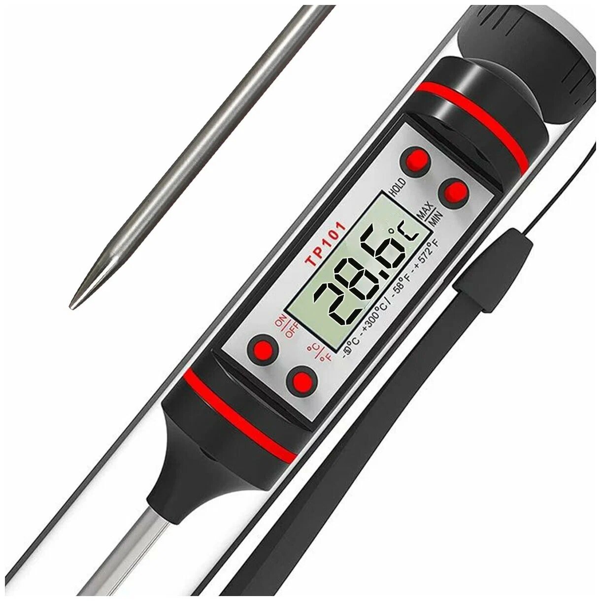 Кулинарный термометр электронный со щупом из нержавеющей стали, термометр для еды, мяса, вина, провод 1 метр / таймер кухонный