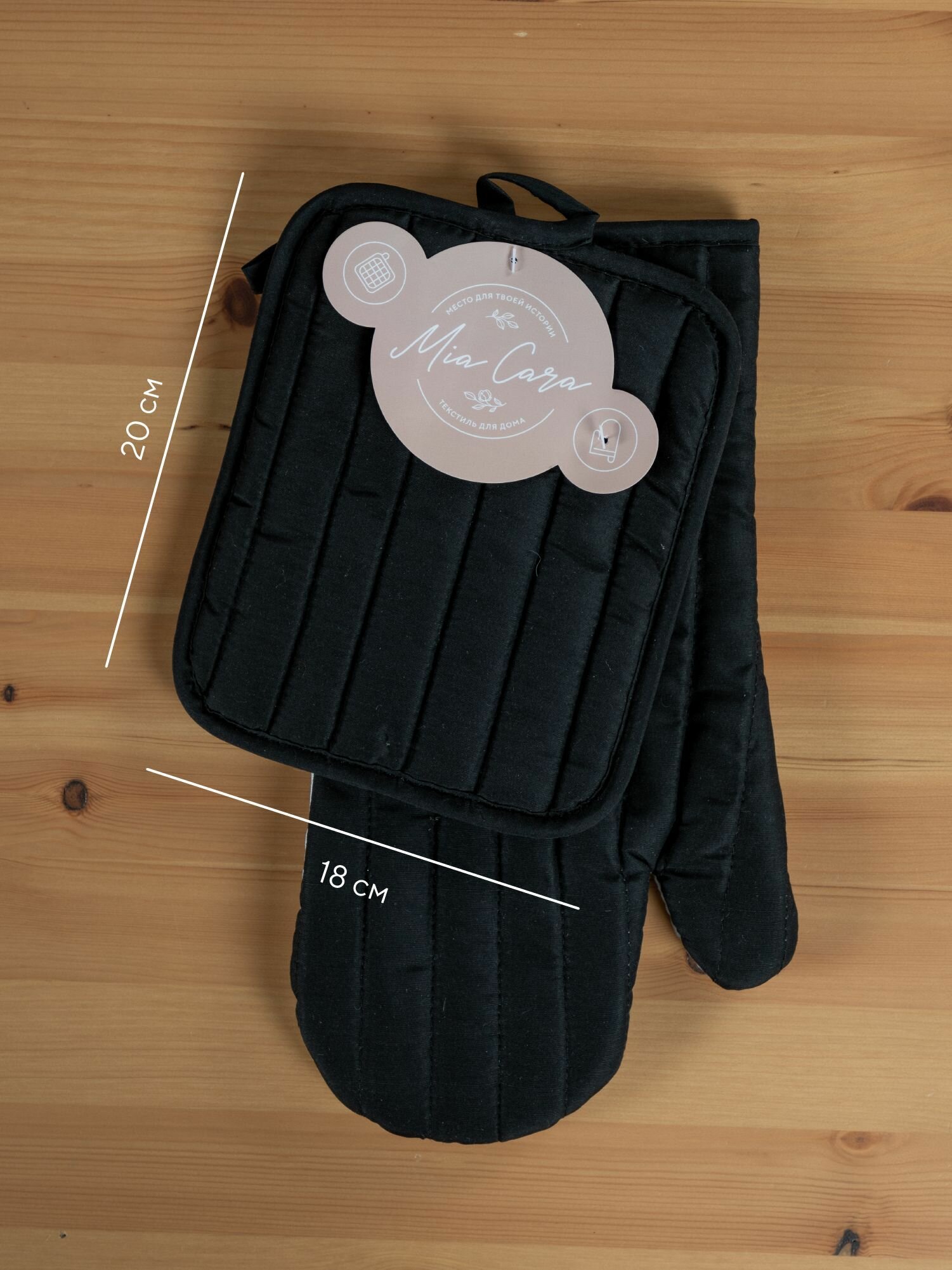 Набор для кухни (прихватка 18х20+рукавица 18х33) "Mia Cara" черный (лицевая часть - 100% полиэстер, задняя часть 80% полиэстер, 20 % хлопок)