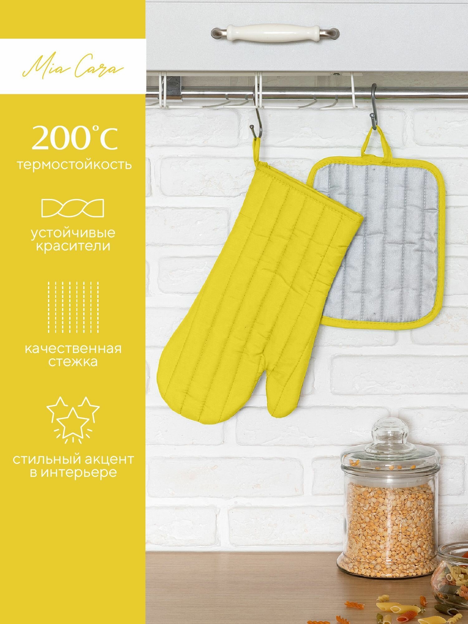 Купить Кухонный набор (прихватка 18х20+рукавица 18х33) "Mia Cara" желтый (лицевая часть - 100% полиэстер, задняя часть 80% полиэстер, 20 % хлопок)