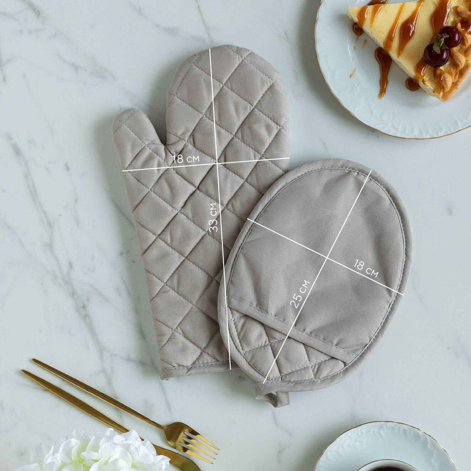 | Подробная комплектация | прихватка 18х20 - 1шт + рукавица 18х33 - 1 шт |