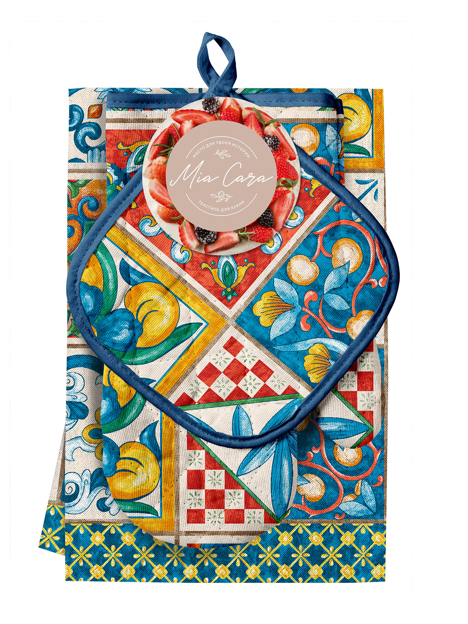 Подарочный набор прихватки для кухни (прихватка 18х18, прихватка-рукавица 18х28) "Mia Cara" рис 30548-1 Maiolica
