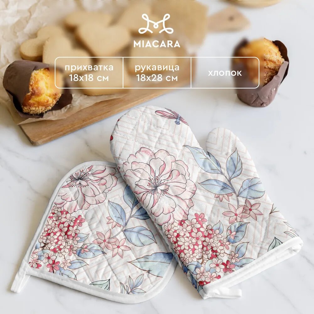 Подарочный набор прихватки для кухни (прихватка 18х18, прихватка-рукавица 18х28) "Mia Cara" рис 30284-5 Жозефина