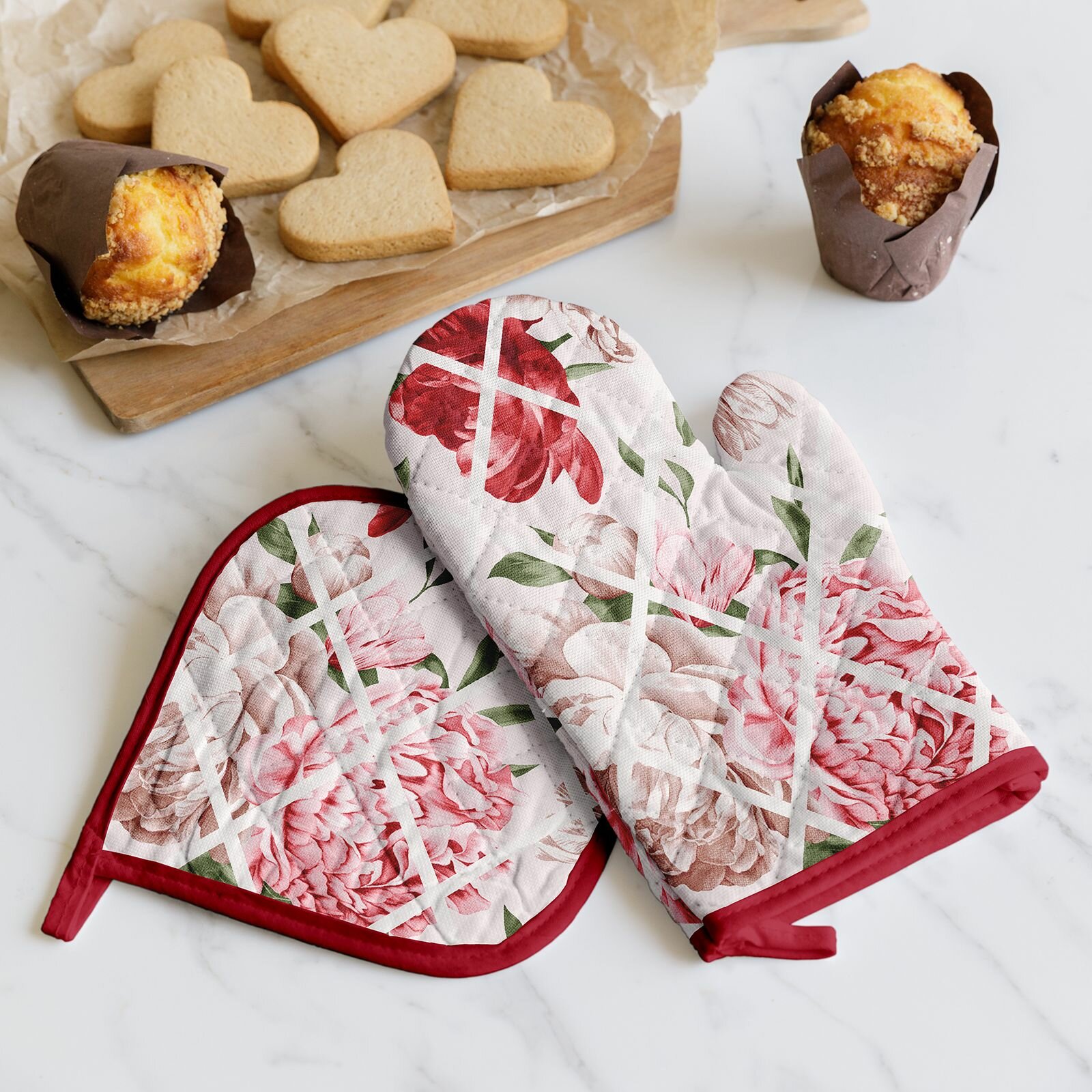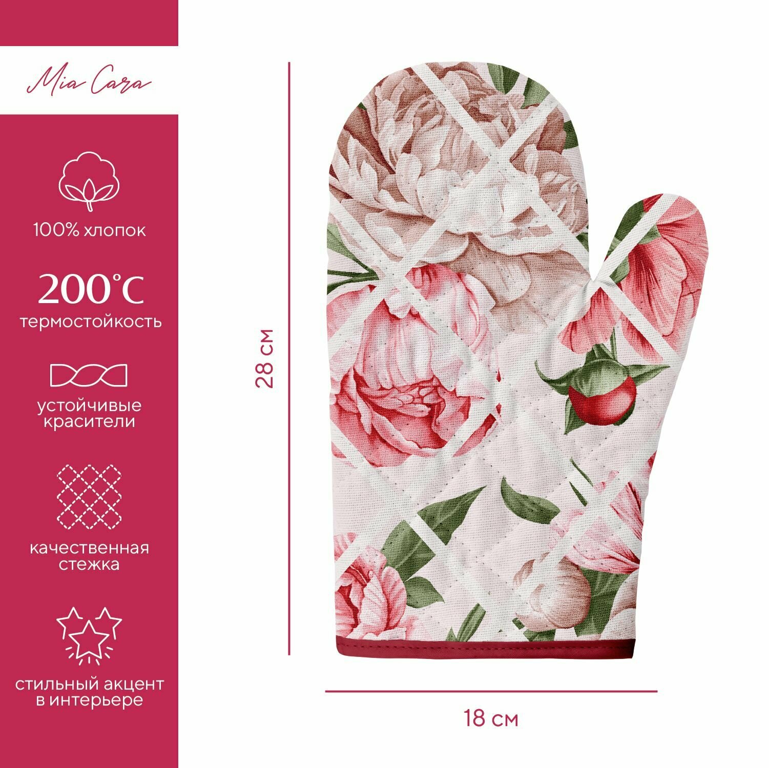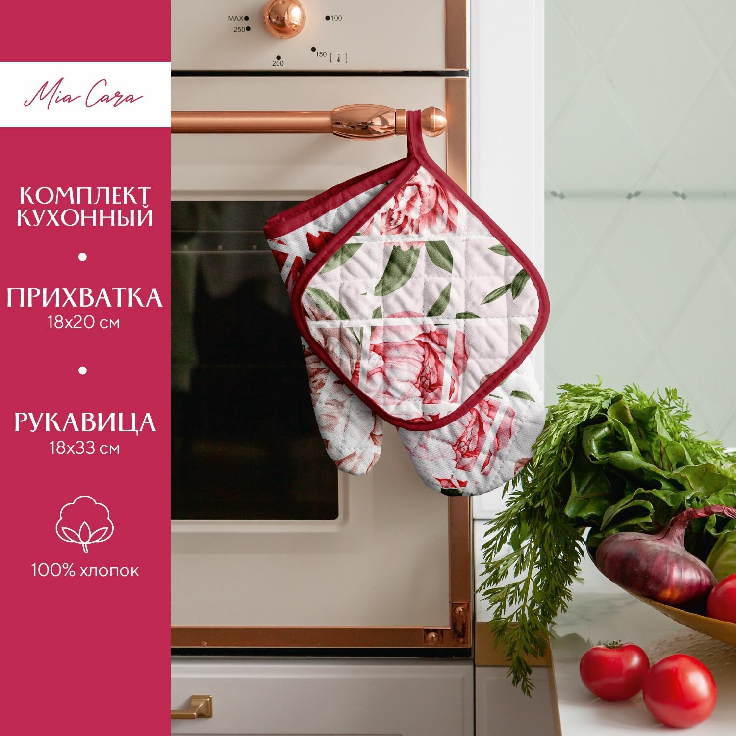 Подарочный набор прихватки для кухни (прихватка 18х18, прихватка-рукавица 18х28) "Mia Cara" рис 14057-1 Душистый пион