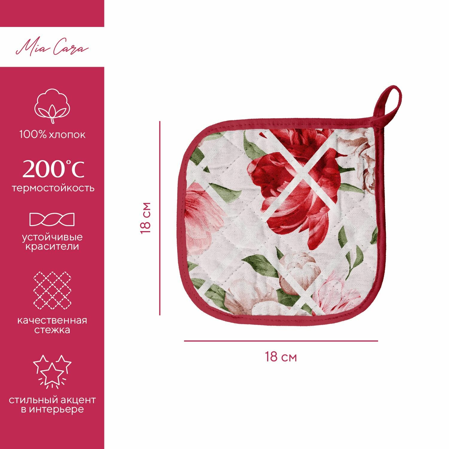 Подарочный набор прихватки для кухни (прихватка 18х18, прихватка-рукавица 18х28) "Mia Cara" рис 30625-1 Scarlet