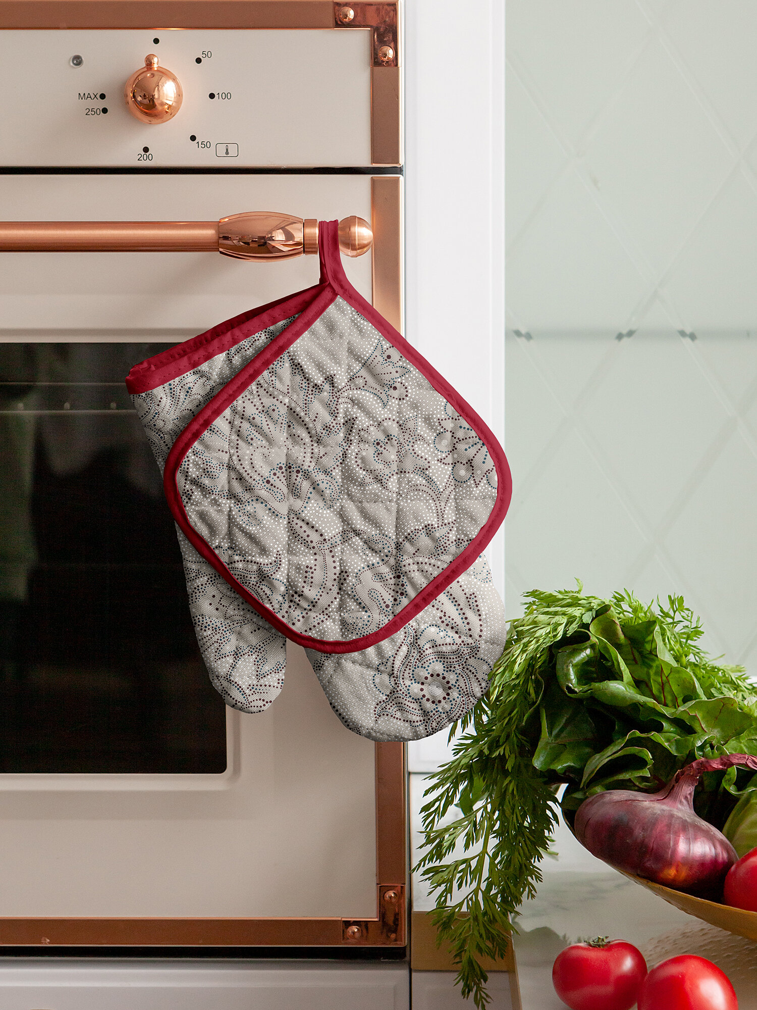 Подарочный набор прихватки для кухни (прихватка 18х18, прихватка-рукавица 18х28) "Mia Cara" рис 30625-1 Scarlet