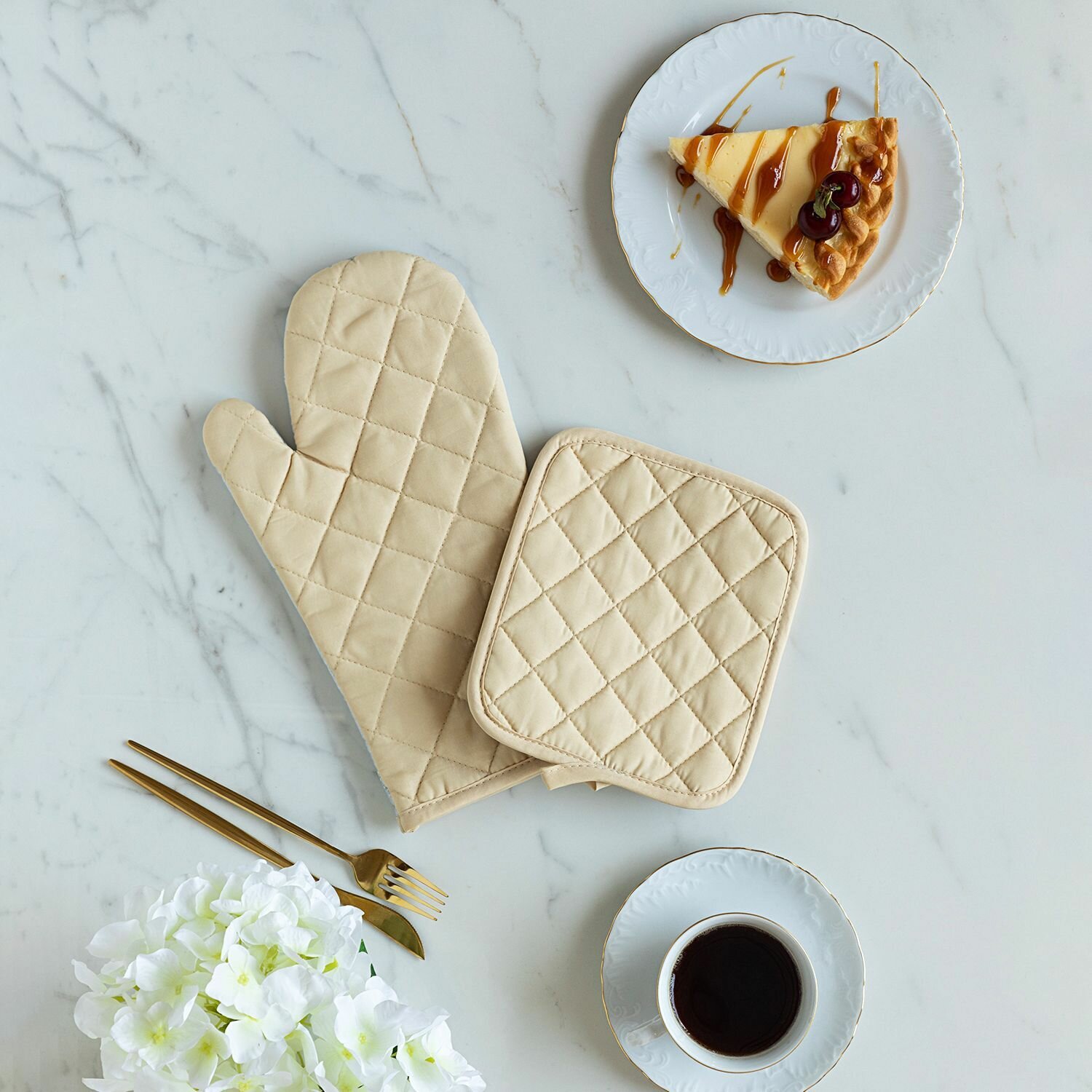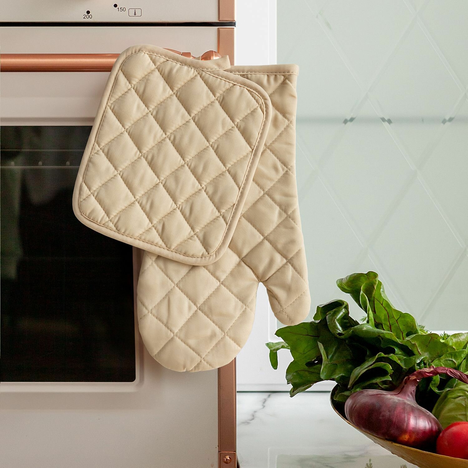 Купить Кухонный набор (прихватка 18х25+рукавица 18х33) "Mia Cara" Vanilla (лицевая часть - 100% полиэстер, задняя часть 80% полиэстер, 20 % хлопок)