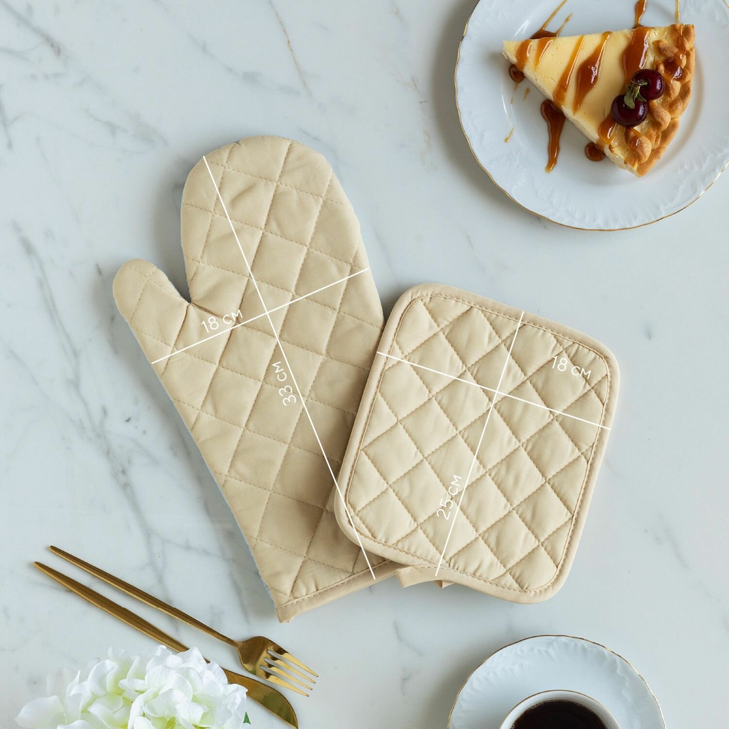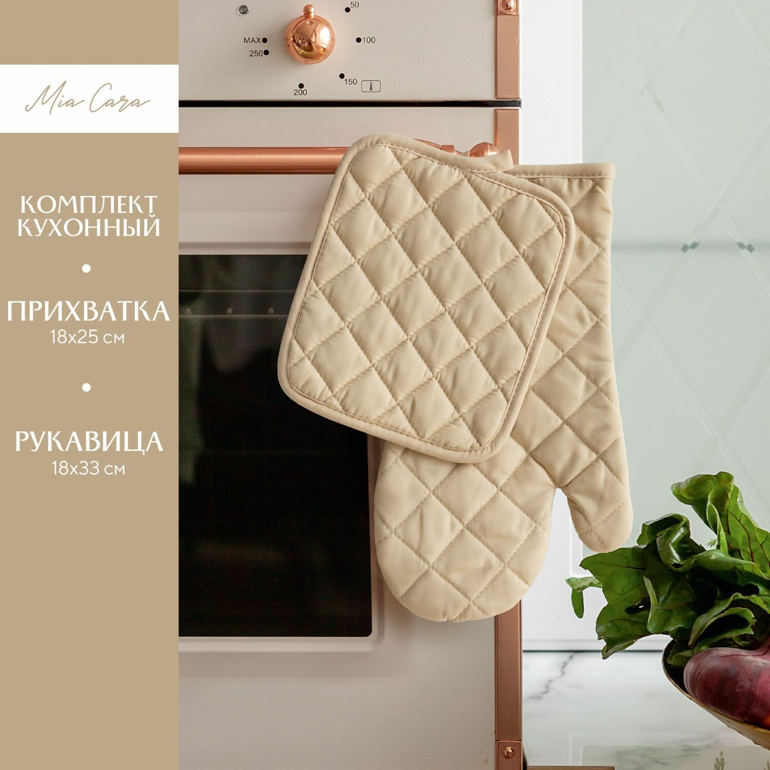 Кухонный набор (прихватка 18х25+рукавица 18х33) "Mia Cara" Vanilla (лицевая часть - 100% полиэстер, задняя часть 80% полиэстер, 20 % хлопок) интересное:
