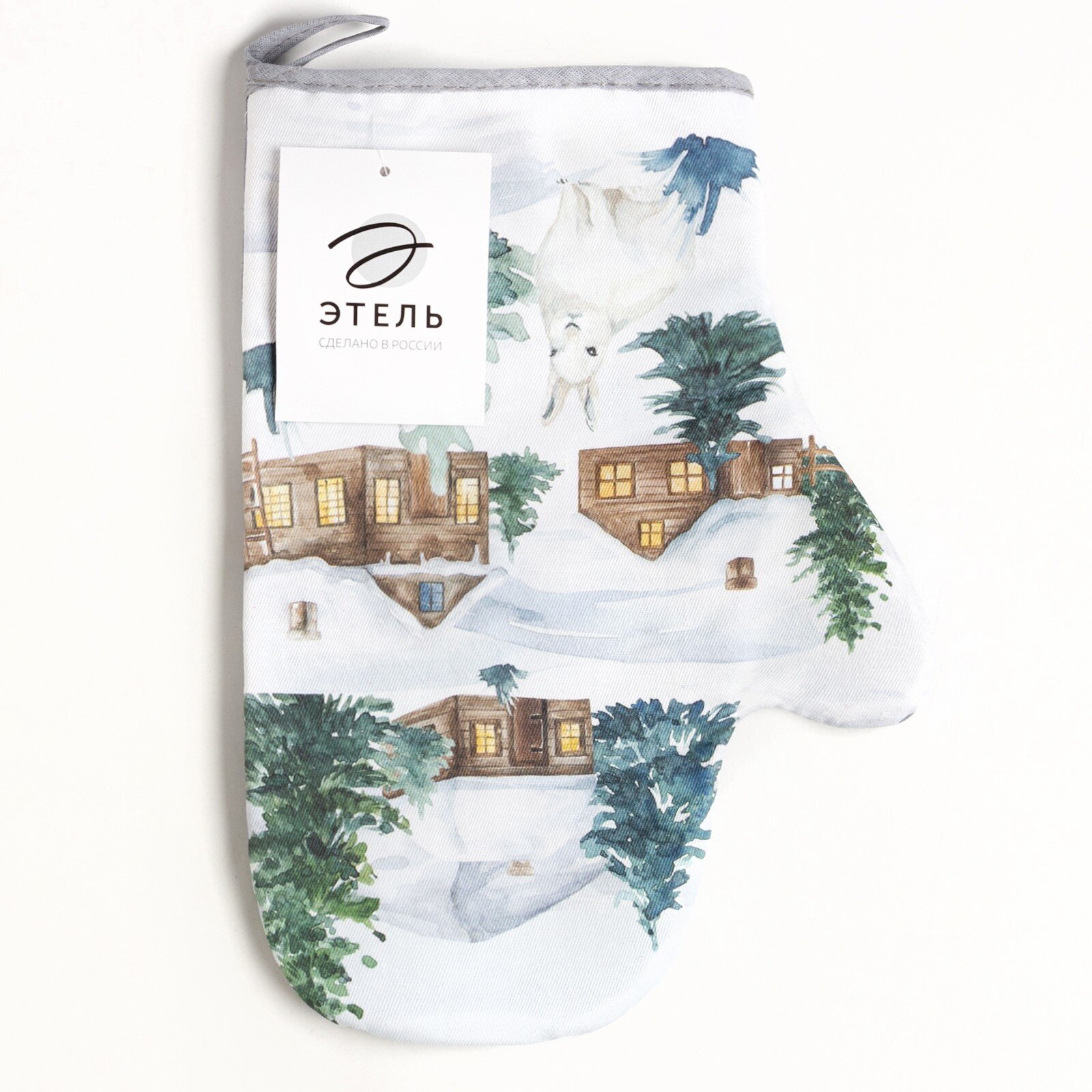 Набор кухонный новогодний Этель "Звери в городе": прихватка 19х19 см, Варежка-прихватка новогодняя 20х28 см, 100% хл