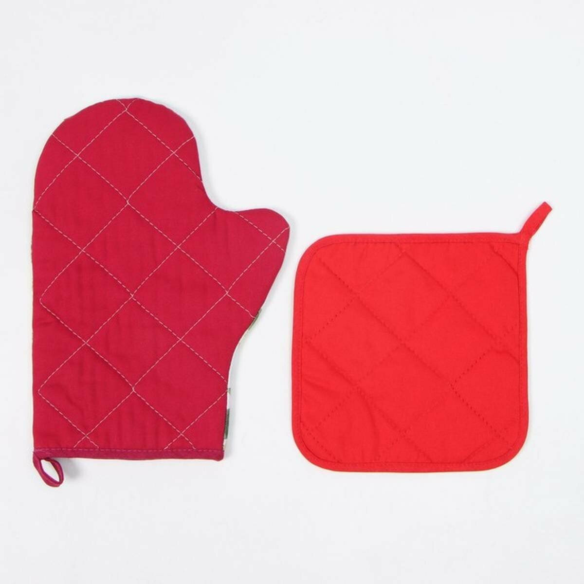 Новый год. Набор кухонный Этель "Рождественские ветки": прихватка 19х19 см, варежка-прихватка 20х28 см, 100