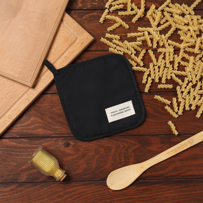 Купить Прихватка Доляна "Душевная кухня" цв.черный 17х17 рогожка,100% х/л