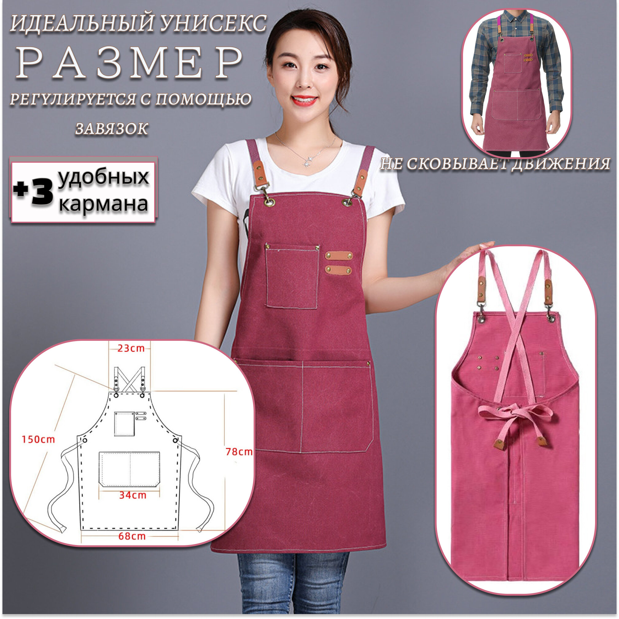 СохранитьФартук универсальный плотный для официанта, бармена, бариста, парикмахера, продавца, повара, кондитера, флориста, кухонный, рабочий. Цвет розовый. интересное: