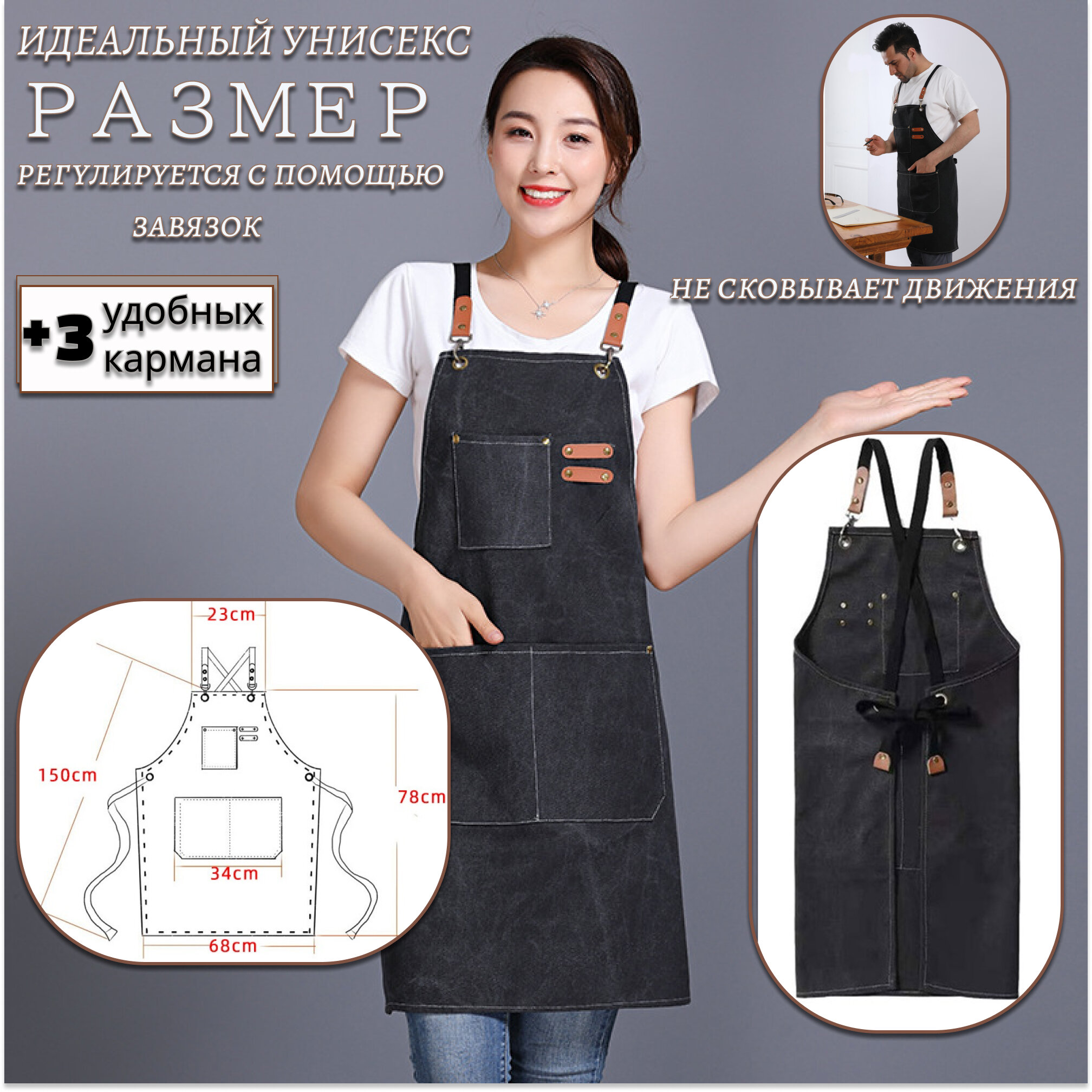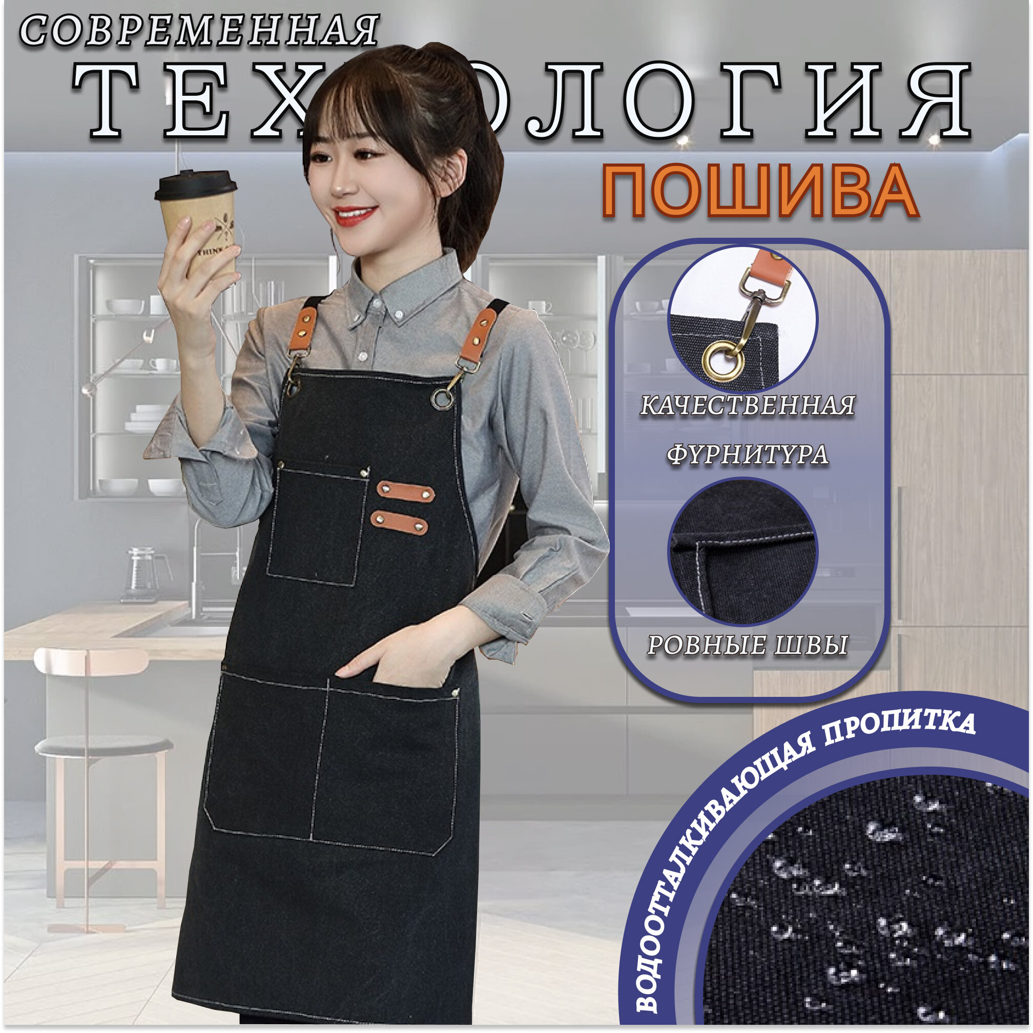 СохранитьФартук джинсовый универсальный плотный для официанта, бармена, бариста, парикмахера, продавца, повара, кондитера, флориста, кухонный, рабочий. Цвет черный. интересное: