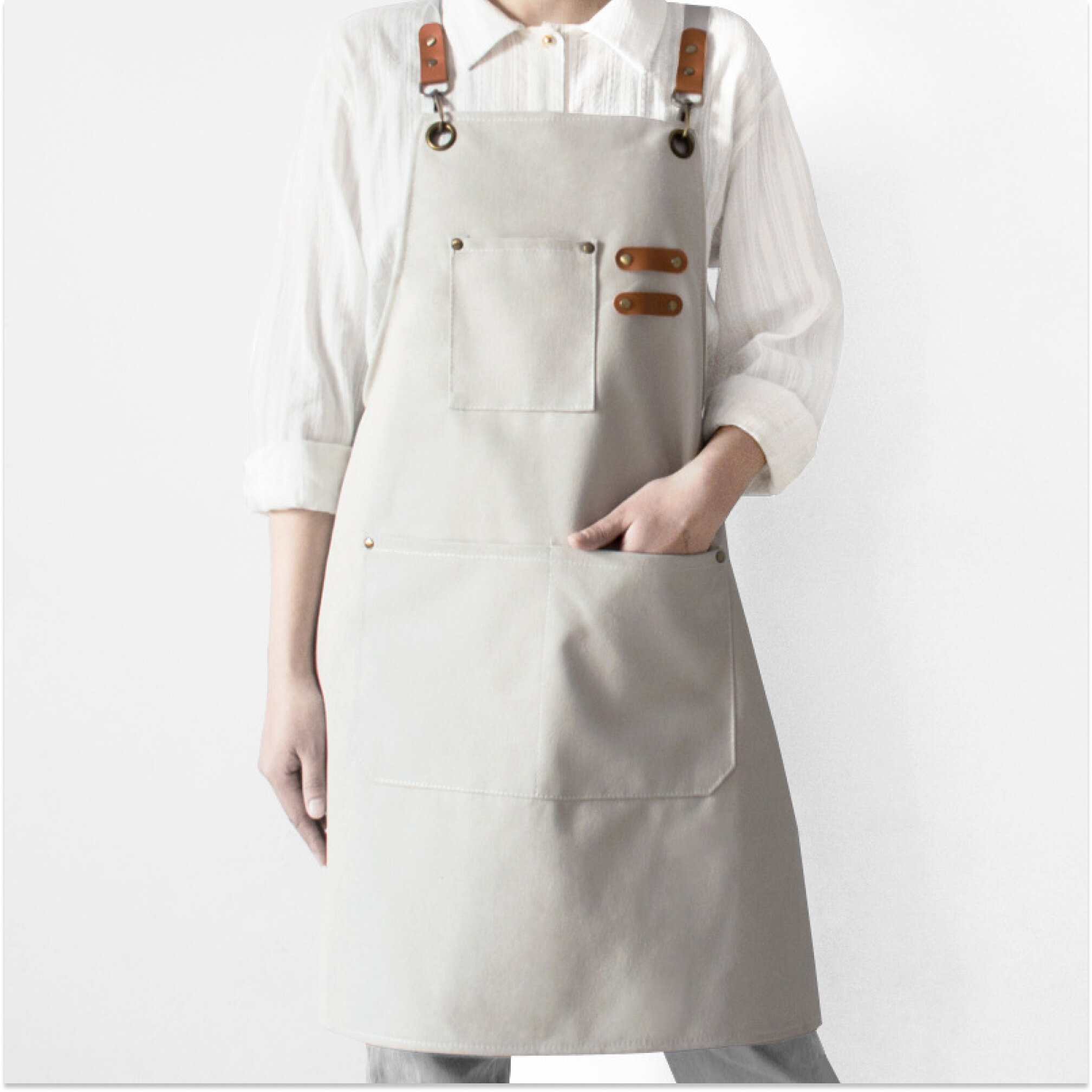 Купить Фартук универсальный плотный для официанта, бармена, бариста, парикмахера, продавца, повара, кондитера, флориста, кухонный, рабочий. Цвет бежевый.