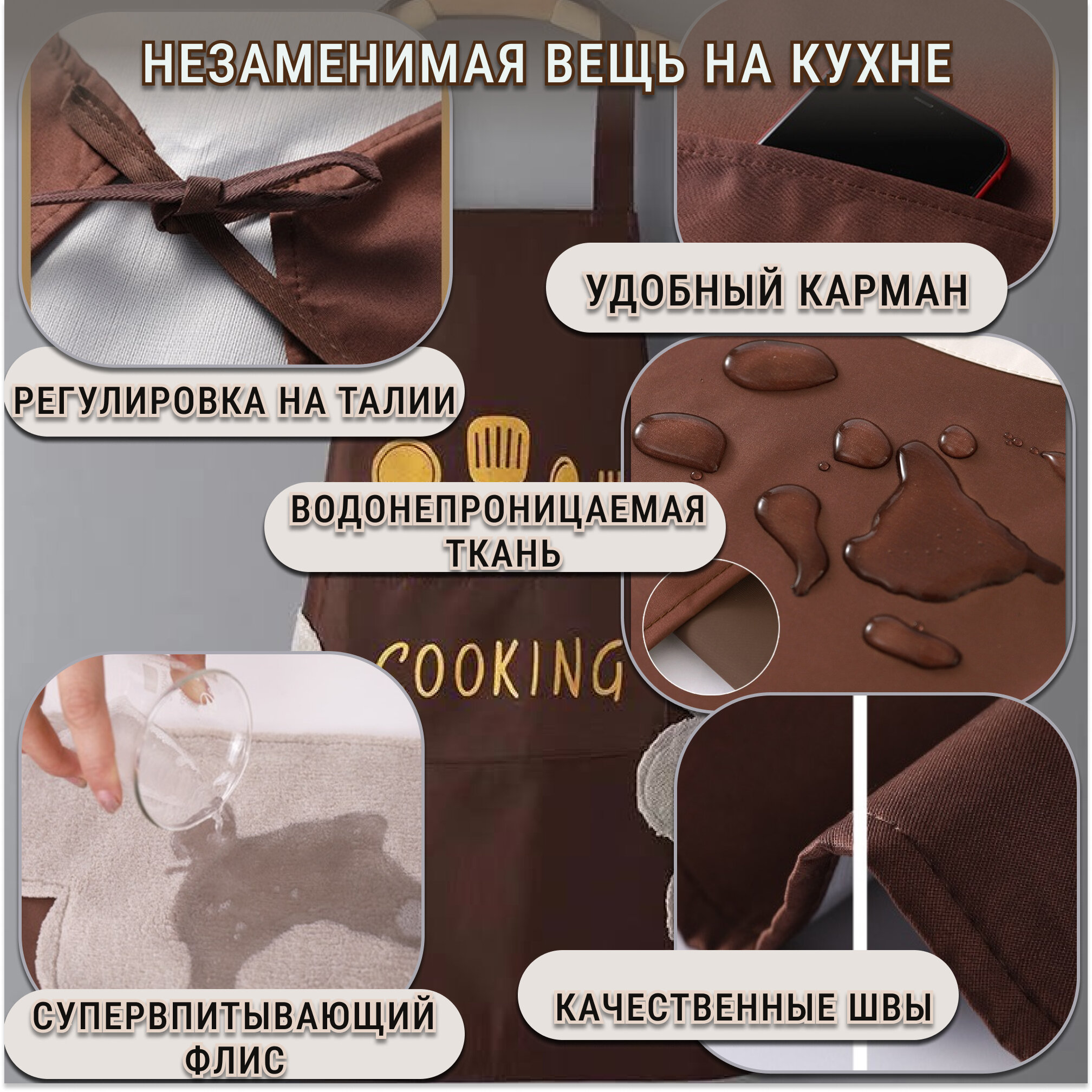 СохранитьФартук кухонный со вставками для вытирания рук. Универсальный размер. Цвет коричневый. интересное:
