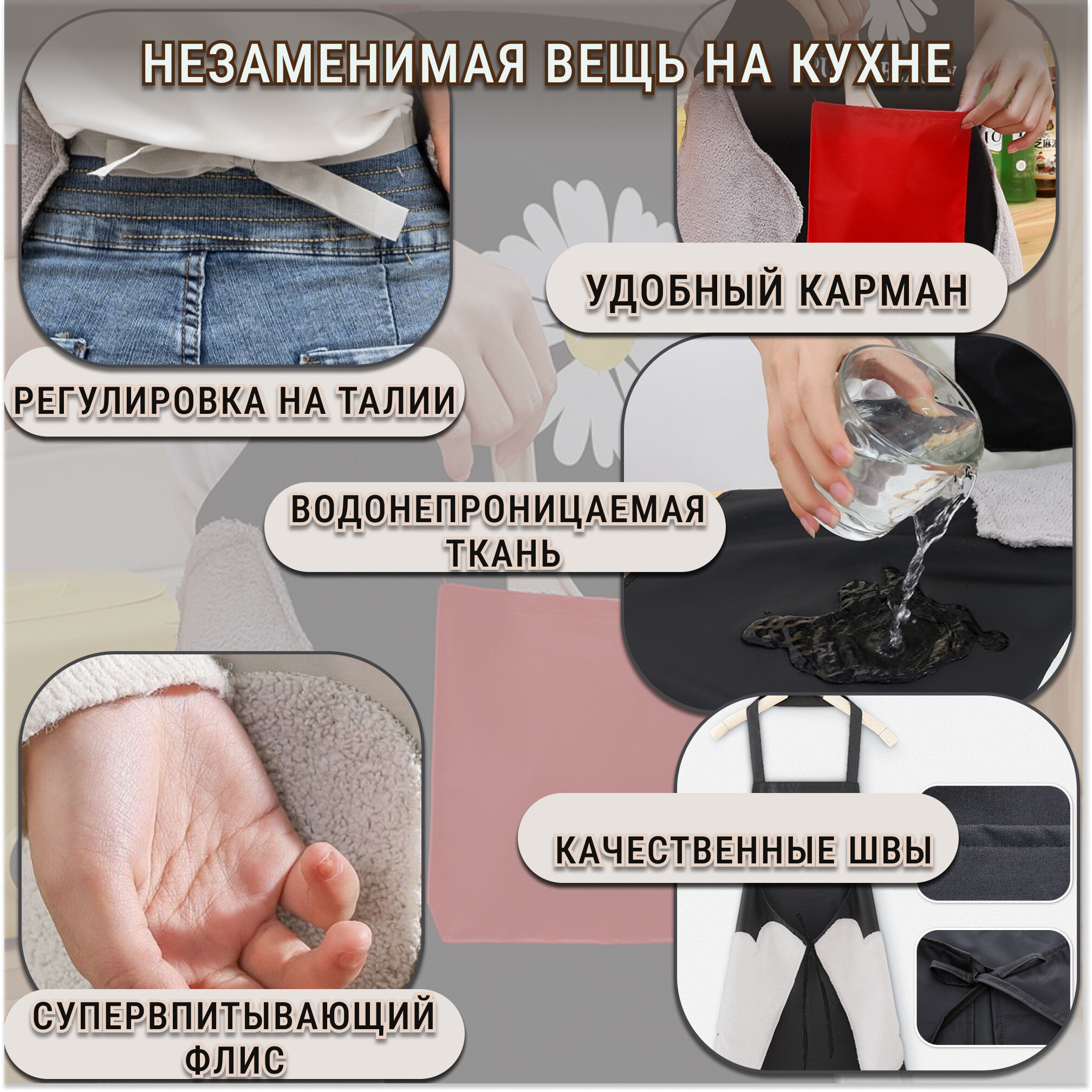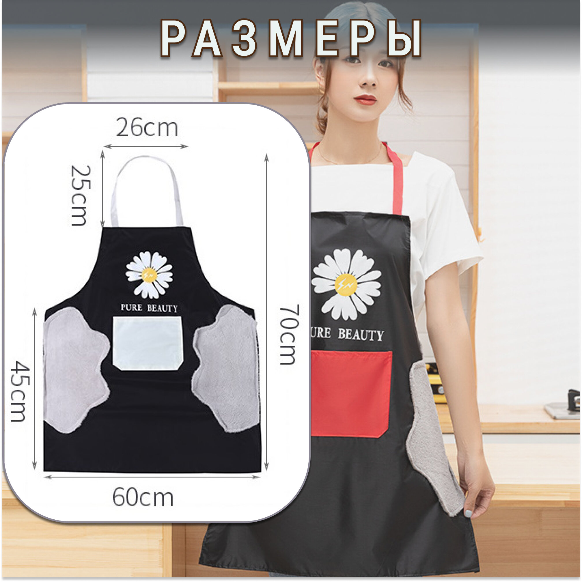 СохранитьФартук кухонный универсальный, рабочий, со вставками для вытирания рук. С принтом "Цветок". Цвет черный с красным карманом. интересное: