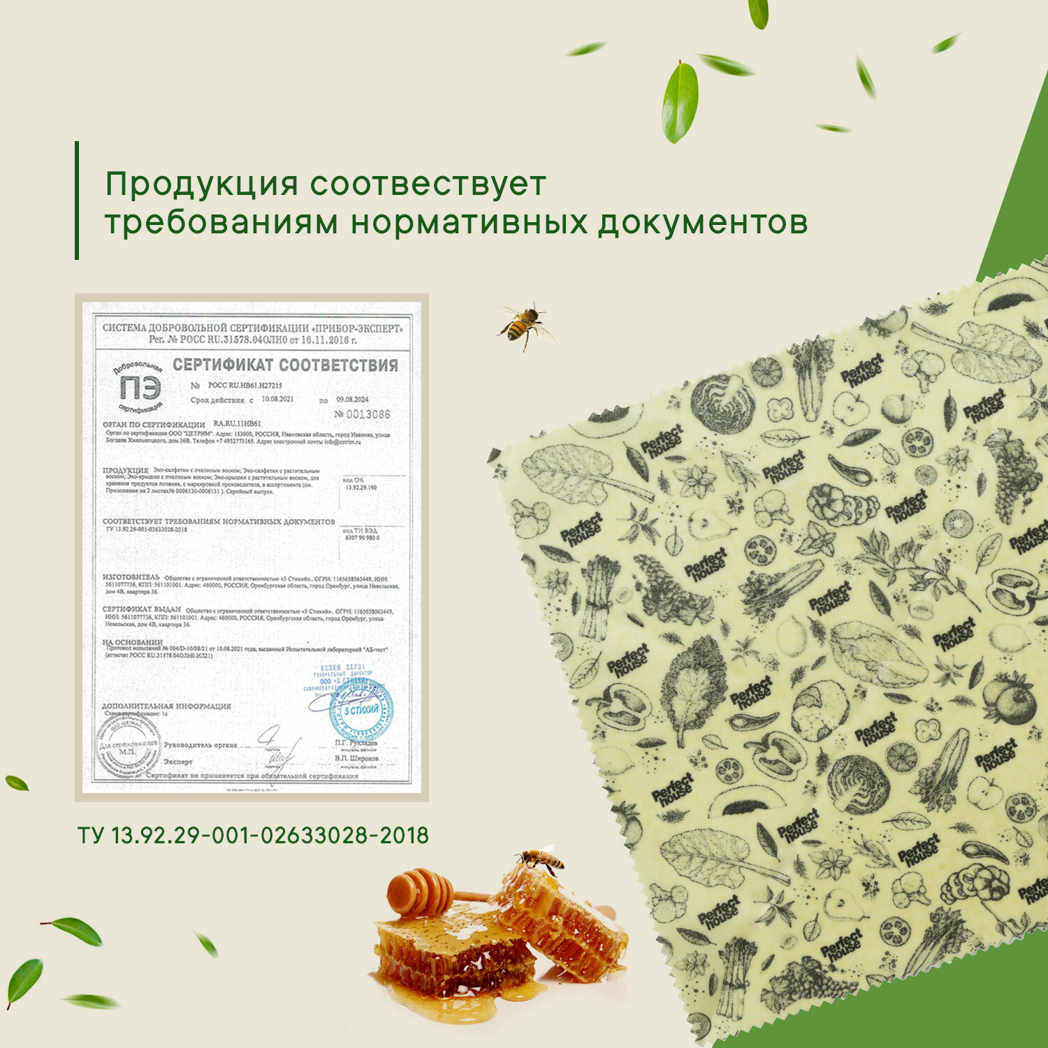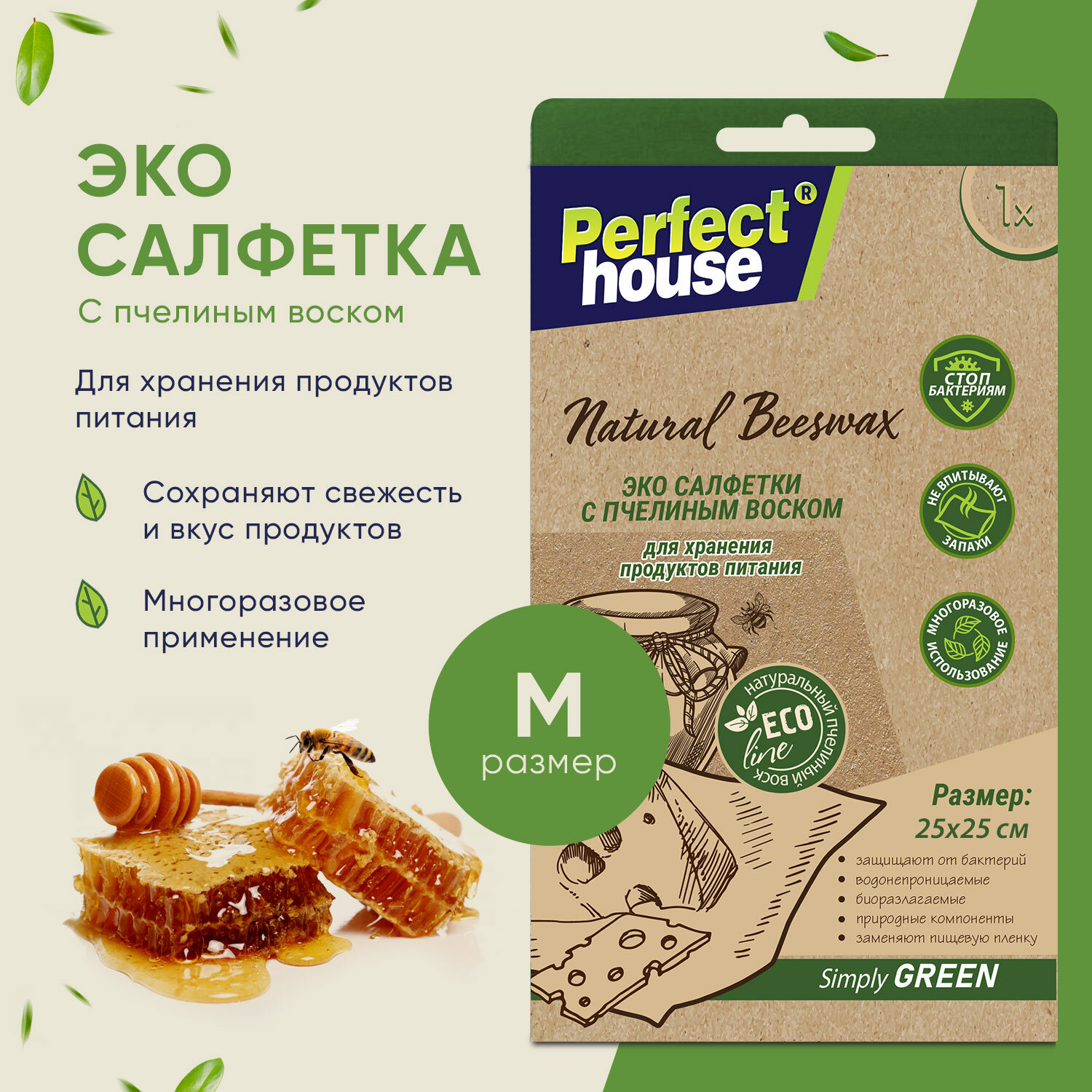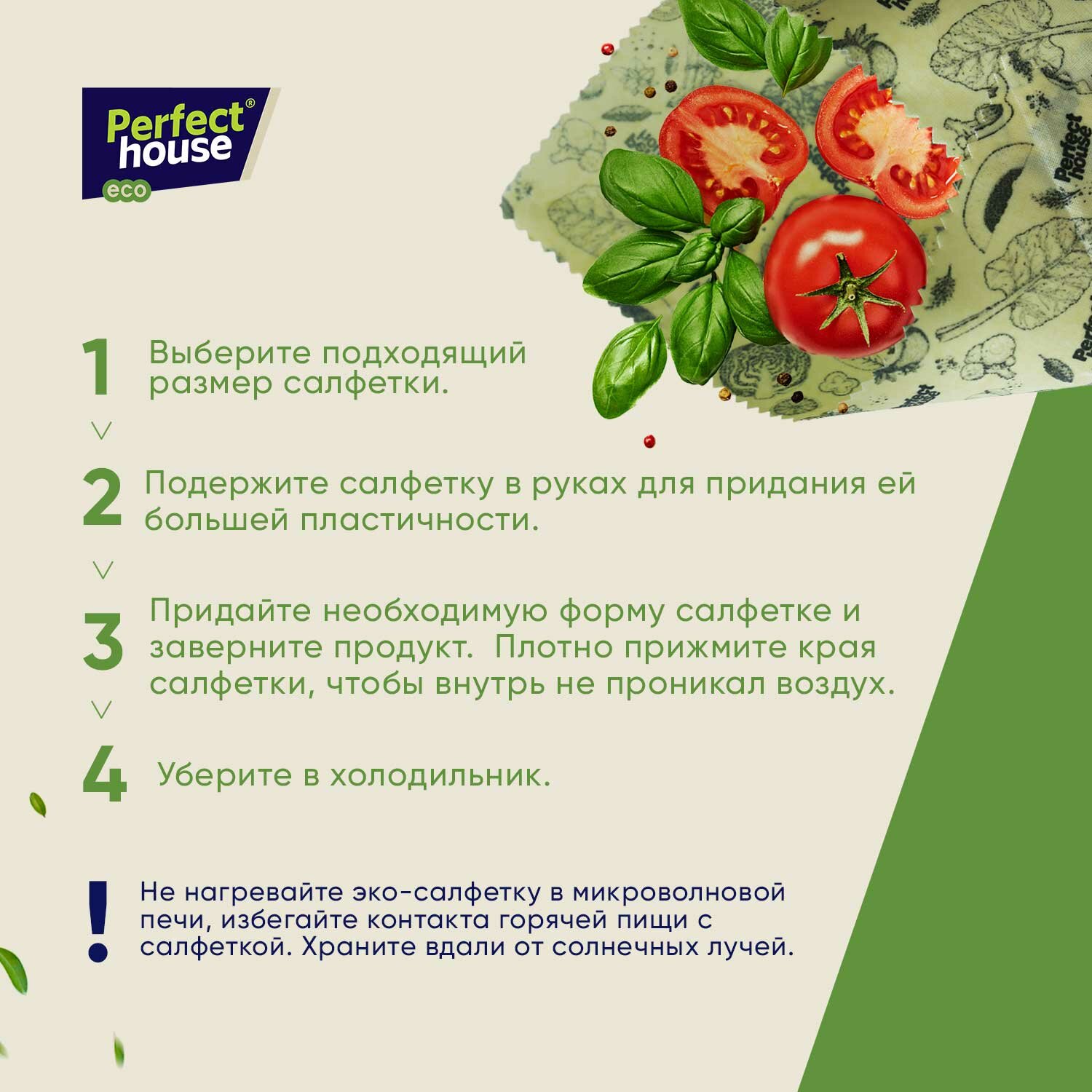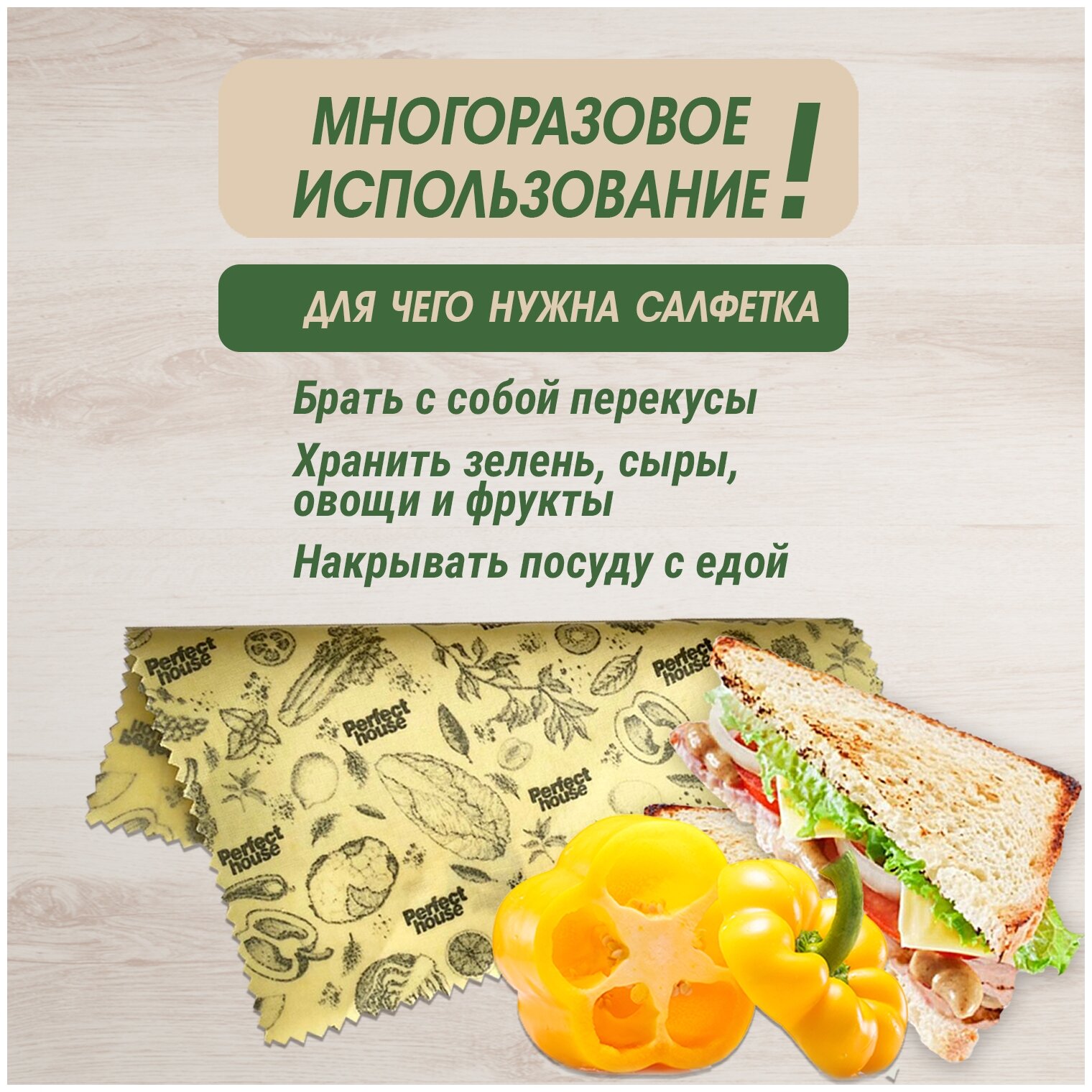 Cалфетки с пчелиным воском Perfect House для хранения продуктов, Eco line, Natural Beeswax, размер М интересное: