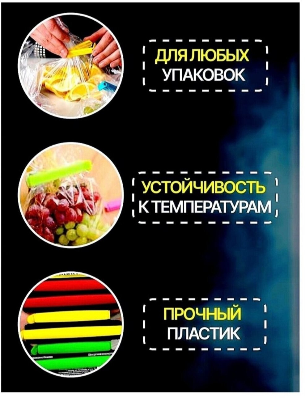 Зажимы для пакетов кухонные (защелки, фиксаторы) 9 см и 12 см. / 6 шт.