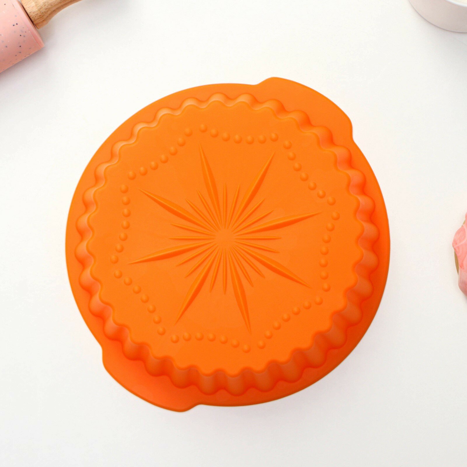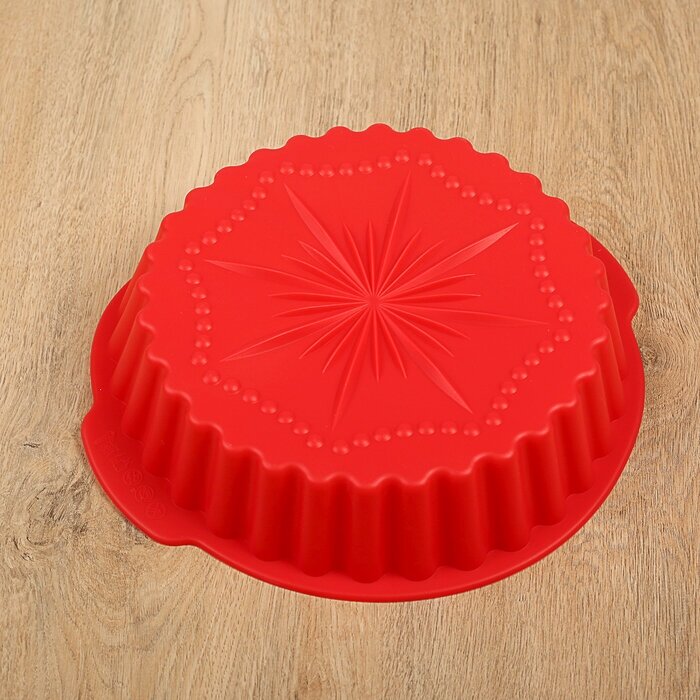 Купить Форма силиконовая для выпечки Доляна «Рифлёный круг. Звезда», d=20 см, с ручками, цвет микс