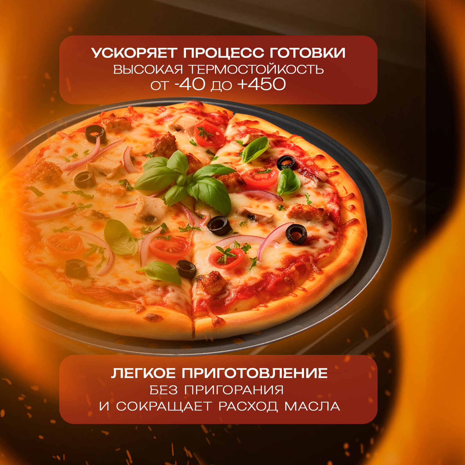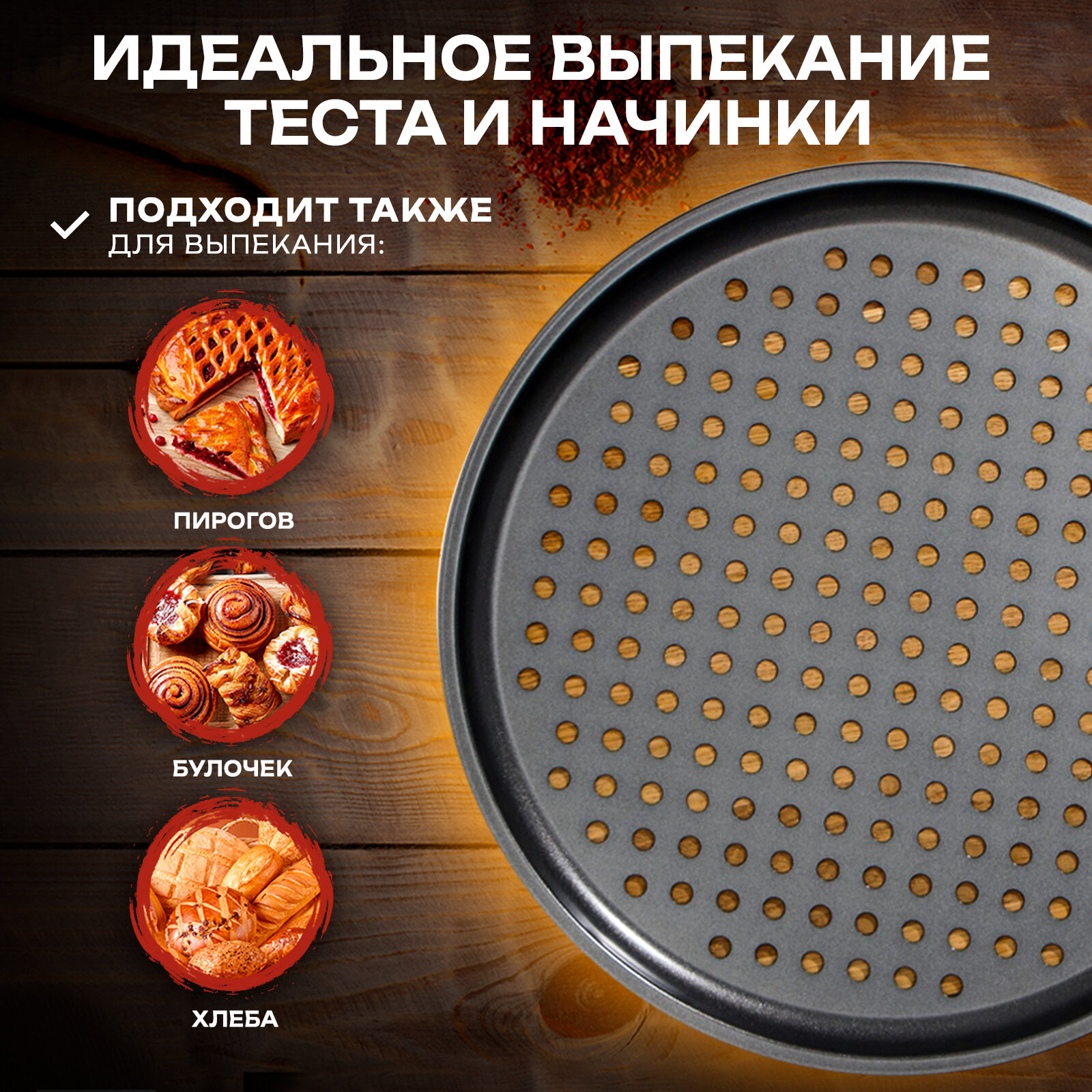Форма для пиццы Доляна «Жаклин», 33×1.5 см, перфорированная, антипригарное покрытие, цвет чёрный интересное: