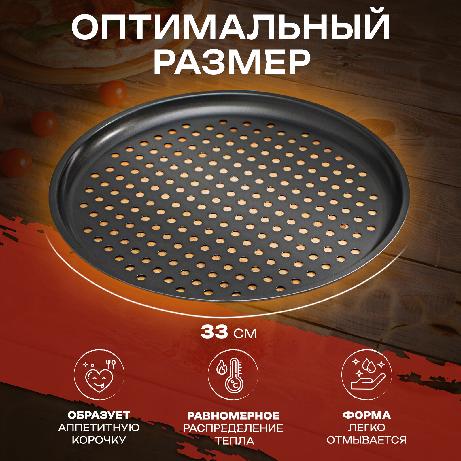 Купить Форма для пиццы Доляна «Жаклин», 33×1.5 см, перфорированная, антипригарное покрытие, цвет чёрный