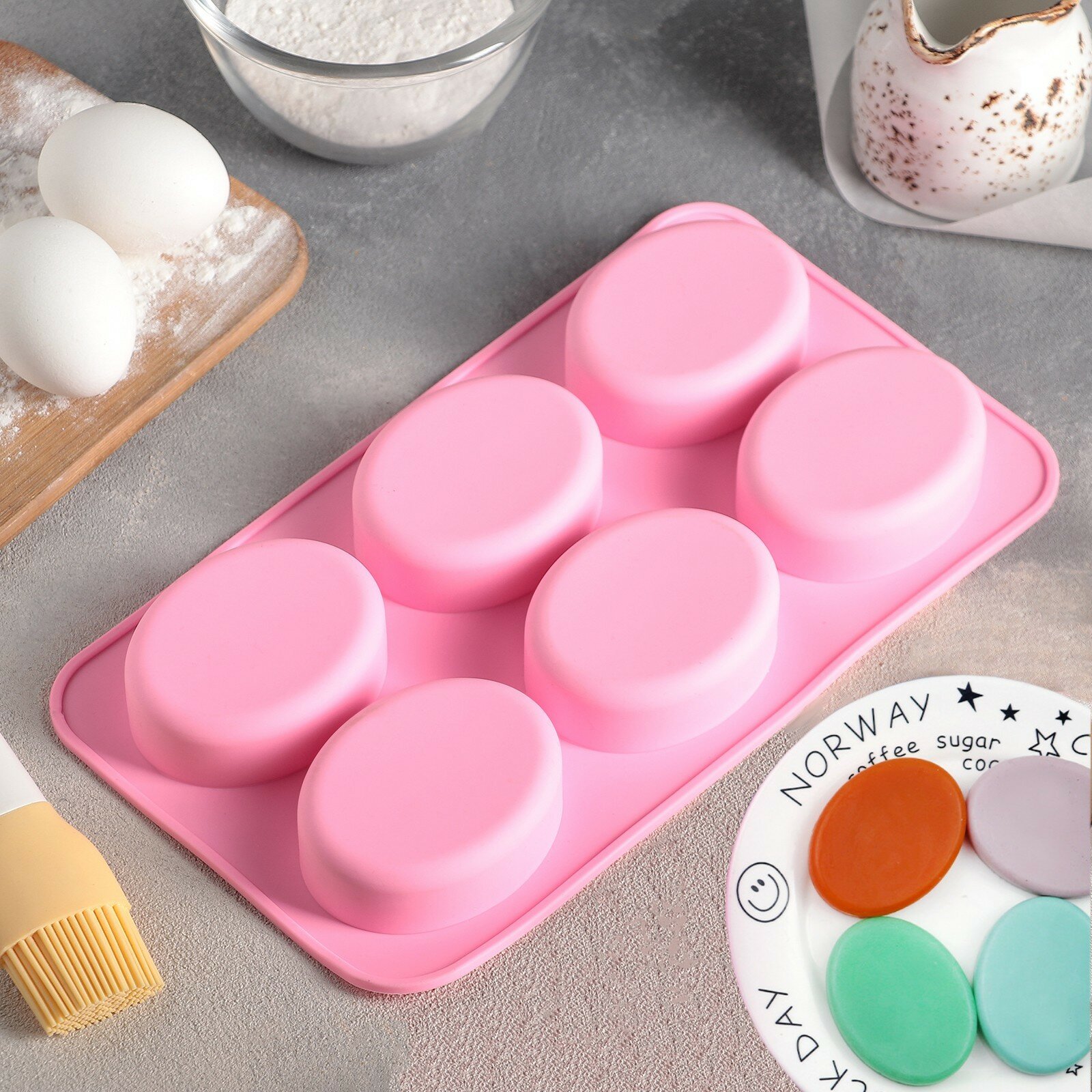 Купить Форма силиконовая для выпечки Доляна «Фигуры. Овал», 28×16×2 см, 6 ячеек, цвет микс
